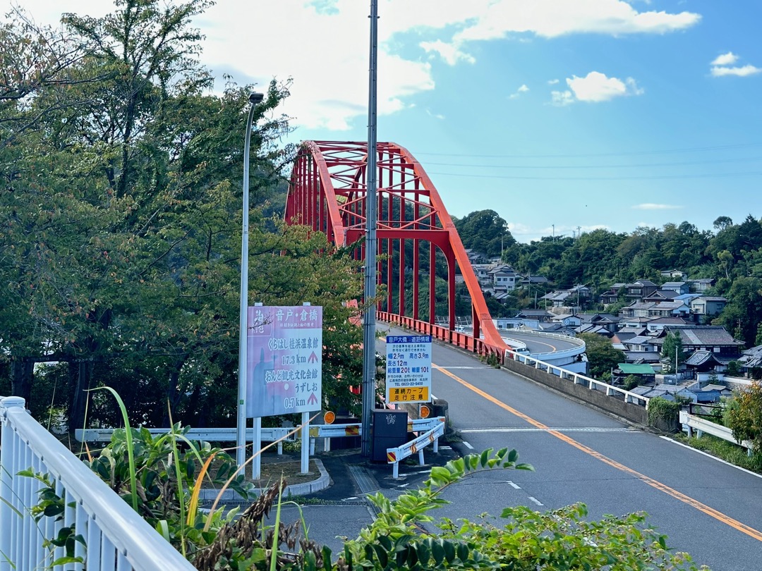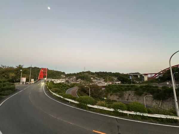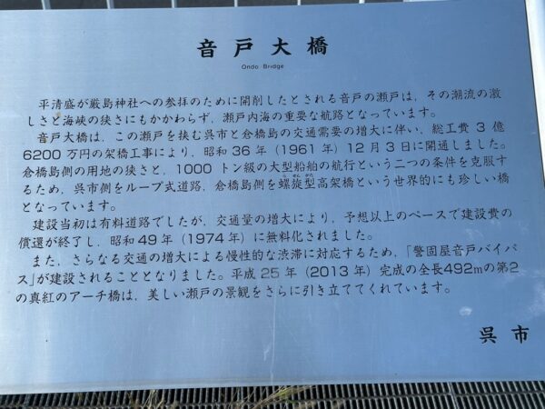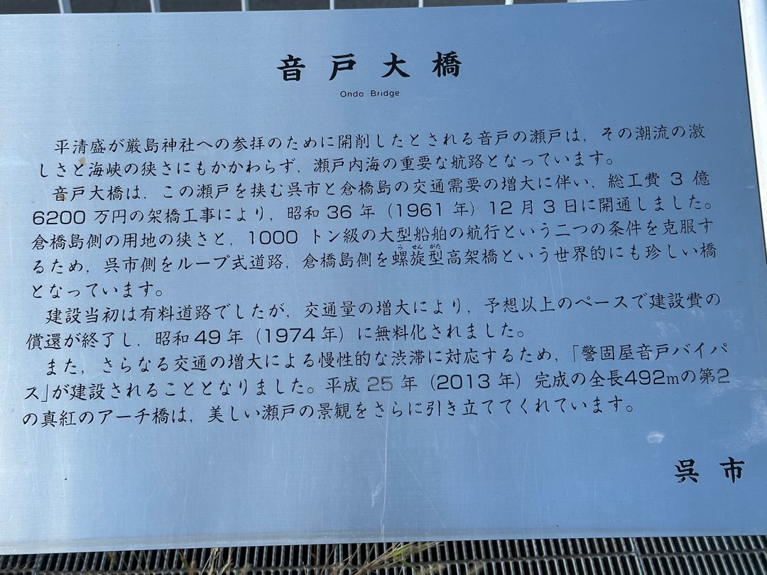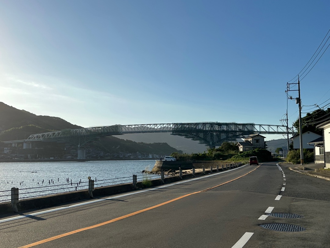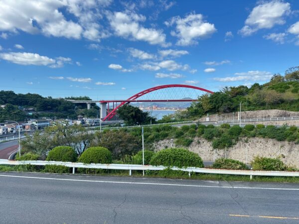 移動途中、音戸大橋を渡り、いったいいつまで続くんだと思うループ橋を降りると倉橋島に入ります。