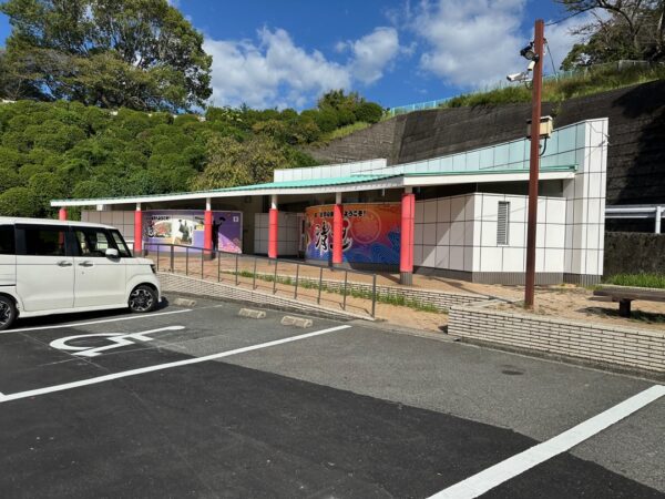 ここの駐車場にはトイレが有りました。車中泊できなくはないですが、ちょっと気が引けますね。