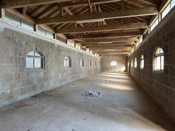 中央に階段があるものの幹部候補生は、その階段の前を通ることは許されず、後ろを通るようになっていたそうです。卒業式が終わるとここから出入りできるらしいです。