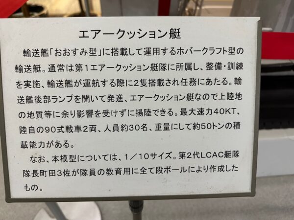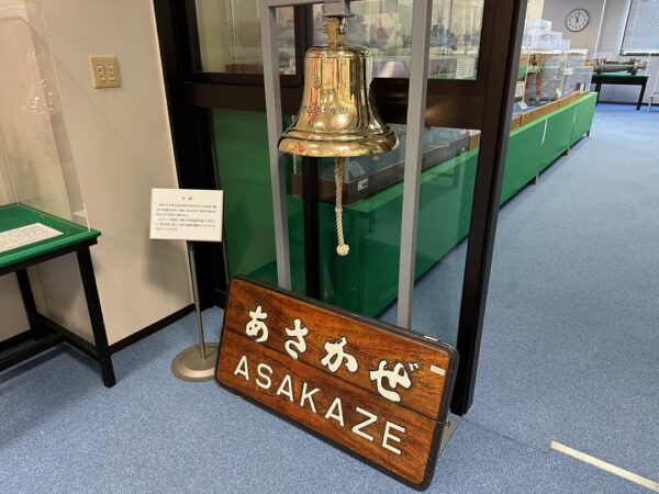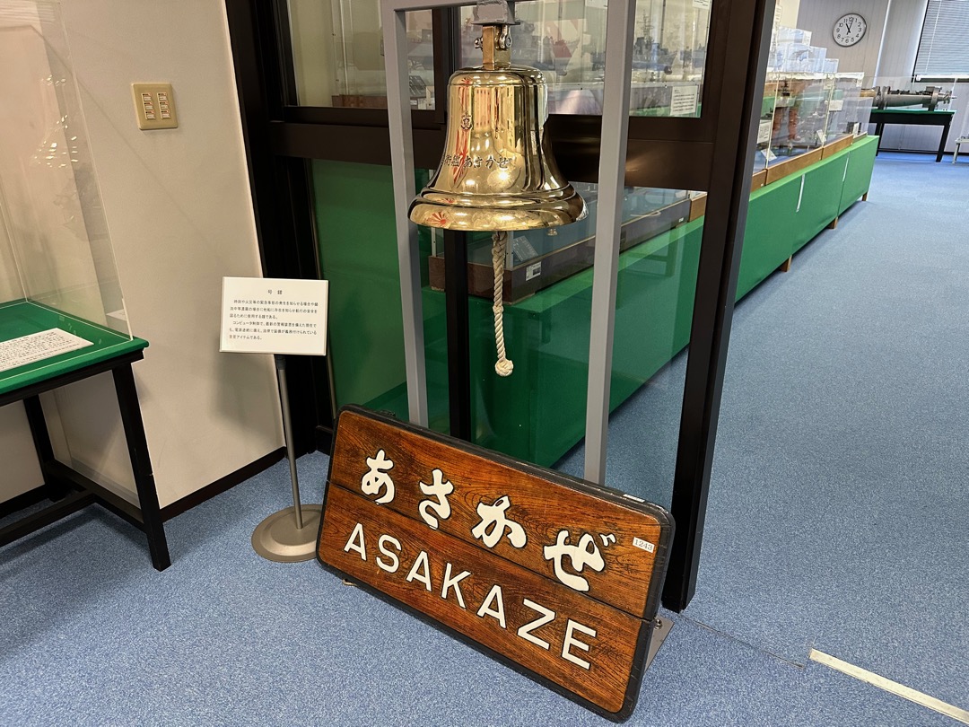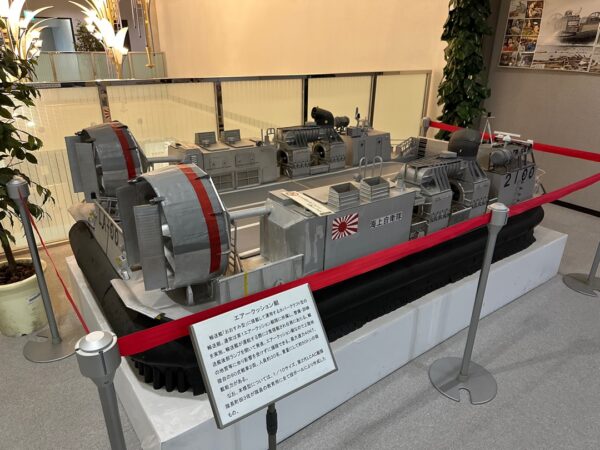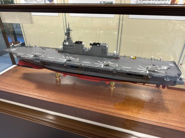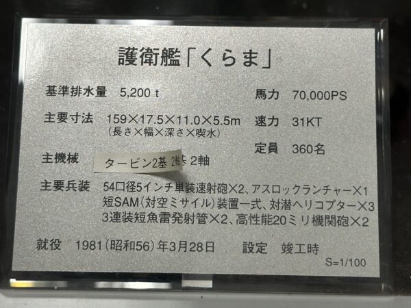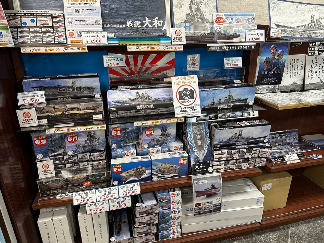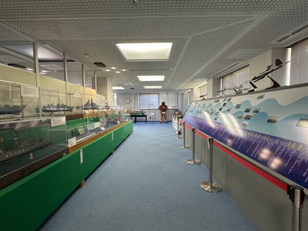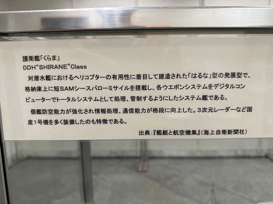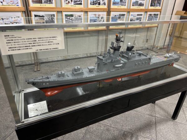 1階には売店もありました。護衛艦「くらま」の模型です。「くらま」は平成27年(2015年)の観艦式観閲艦(総理大臣が乗る艦船)を務めました。なぜ知っているかといいますと、自分は、その予行の際に「くらま」に一般人のひとりとして乗艦したからです。「くらま」は、その後、平成29年(2017年)に退役しました。