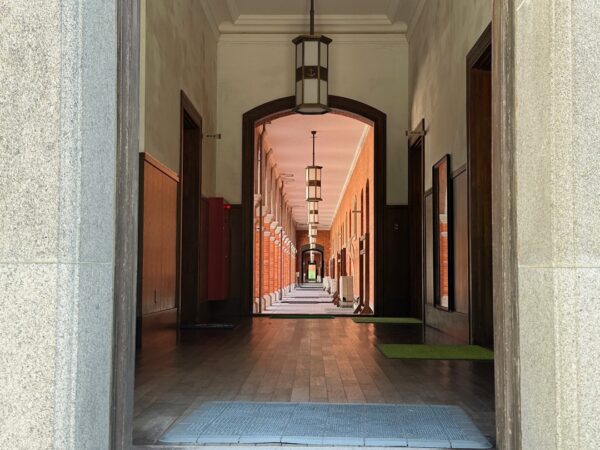 ここは、大講堂の東口で天皇陛下が出入りされる門でした。戦後はVIPが入るために使用されるのだそうです。ここの学校の人でここから出入りできるのは校長先生だけだそうです。