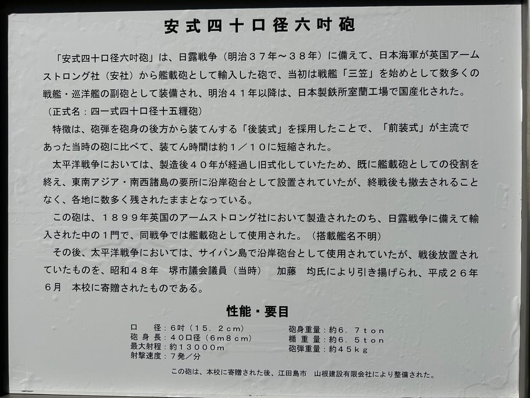 ここに、この写真のような火砲が据え付けられていたのだと思います。