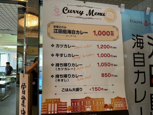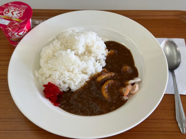 もちろん、江田島海自カレー(シーフード)1,000円です。普通のカレーに比べて塩味が効いていて美味しかったです。