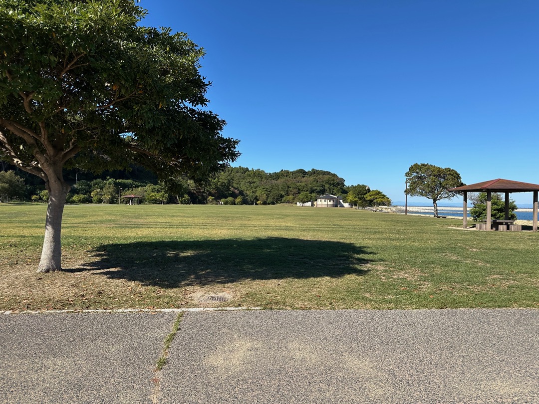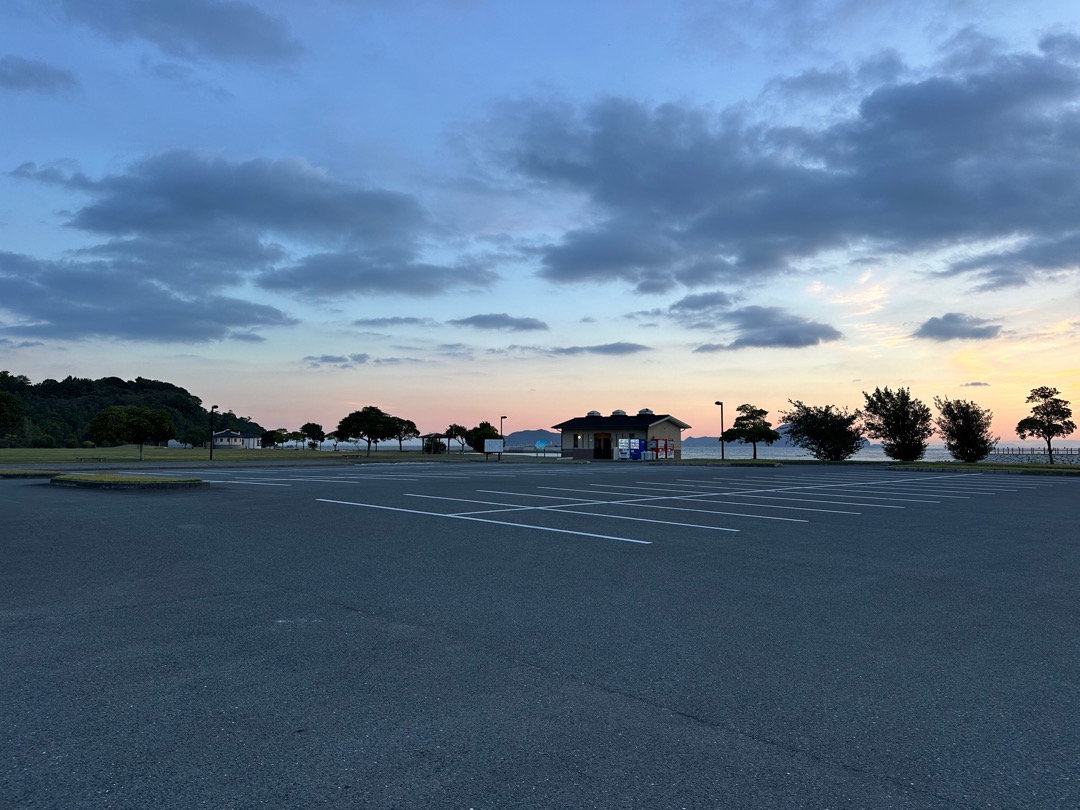 黒津崎国民休養地(キャンプ海水浴場)の駐車場に車を駐めました。
