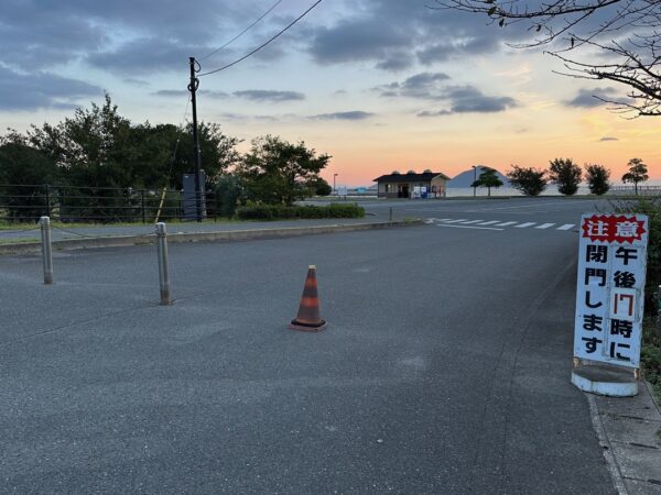 道の駅の隣には、大きな駐車場がありますが、17時にはチェーンとコーンで入れなくなっていました。