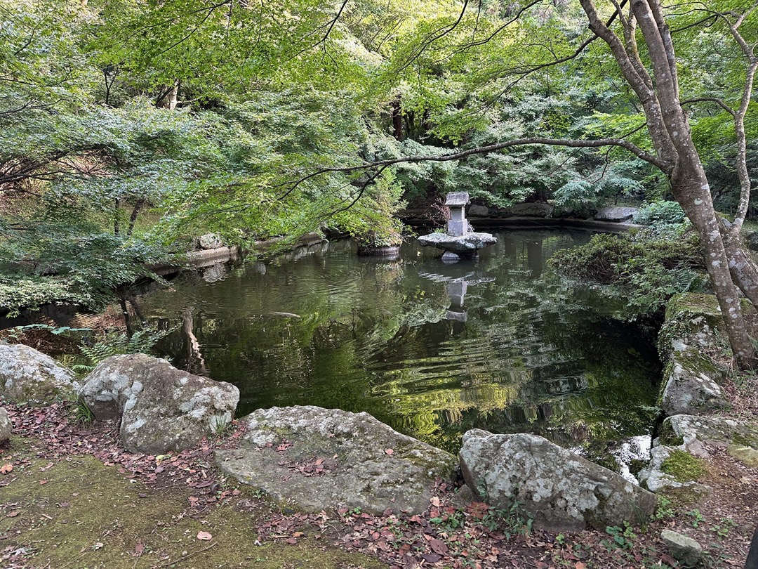 まず、駐車場から少し下ったところにある仁王様を観に行きました。池がきれいです。