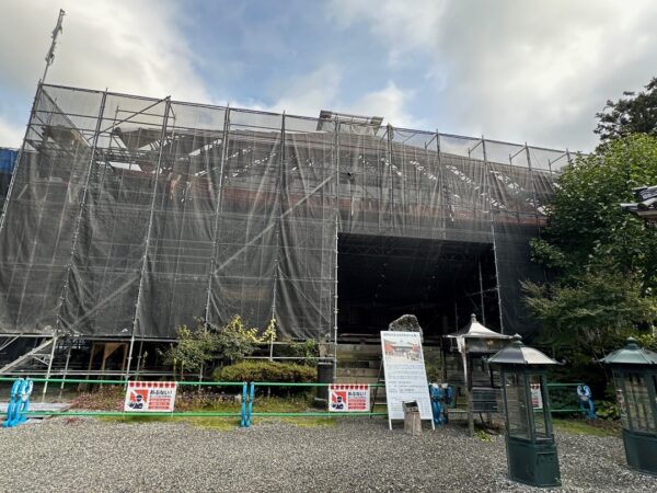 護摩堂は屋根の吹き替え中で観ることができませんでした。ピカピカの銅板を貼っている最中のようでした。