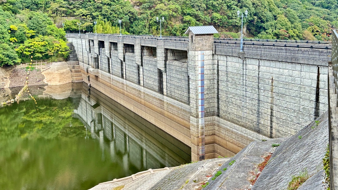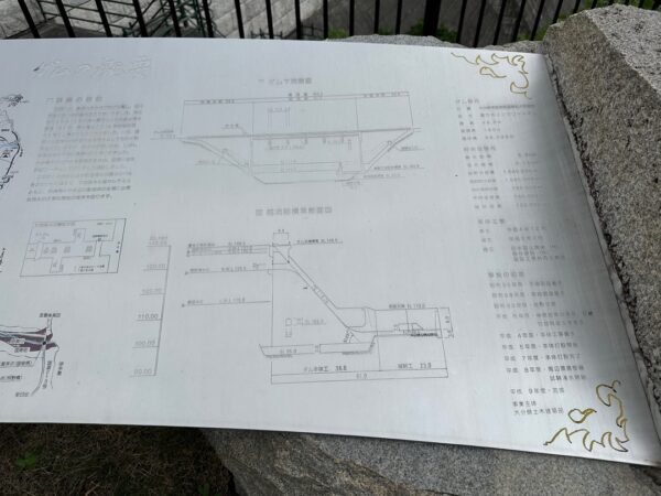 見づらいですが諸元です。堤高 43.5m、堤頂長 180mの重力式コンクリートダムです。