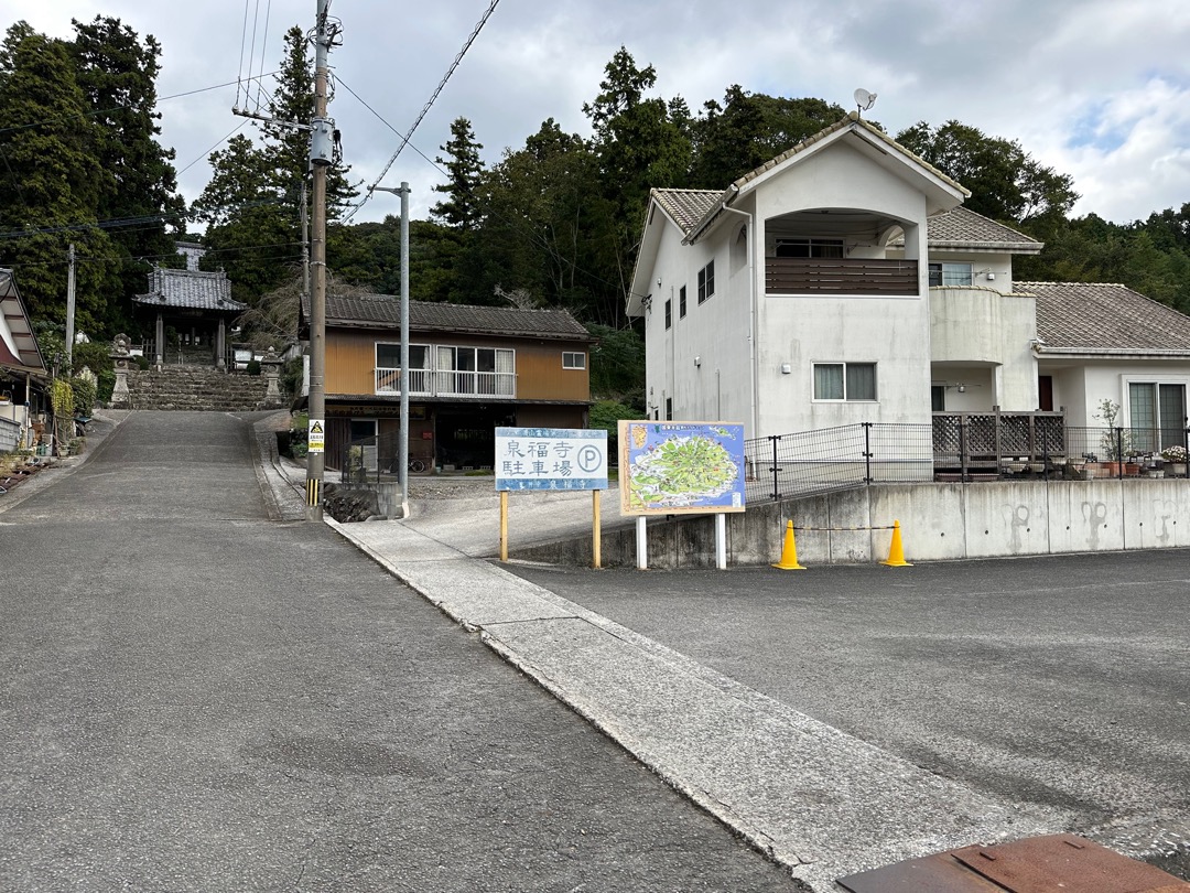 泉福寺の駐車場に車を駐めました。ここは駐車場がどこにあるのか調べるのに時間がかかりました。普通車が20台(大型バスも可)駐められるようなところがGoogleマップで見つけられなかったからです。