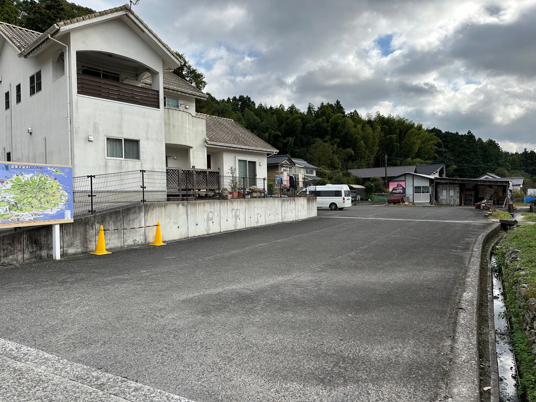 総門を目指してまっすぐ進むと、総門の手前30mくらいのところの右手に駐車場という看板があります。ここを右に曲がると