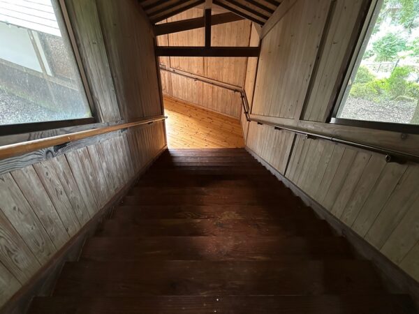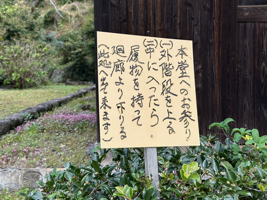 本堂で参拝したら、履物を持って右にある回廊を通って降りて来いと書いてありました。