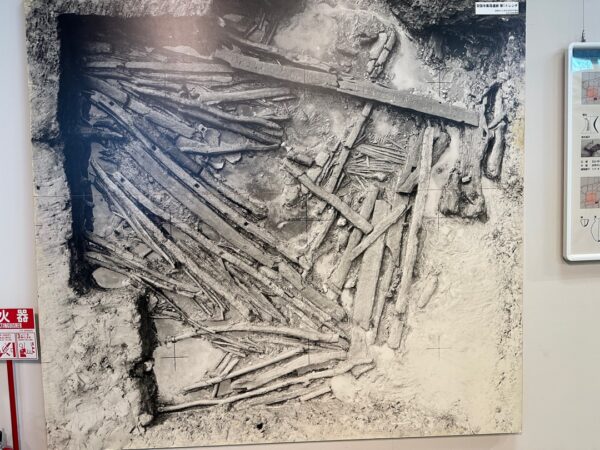 この施設には、テラスがあり、そこから復元住居を観ることができるようになっていました。