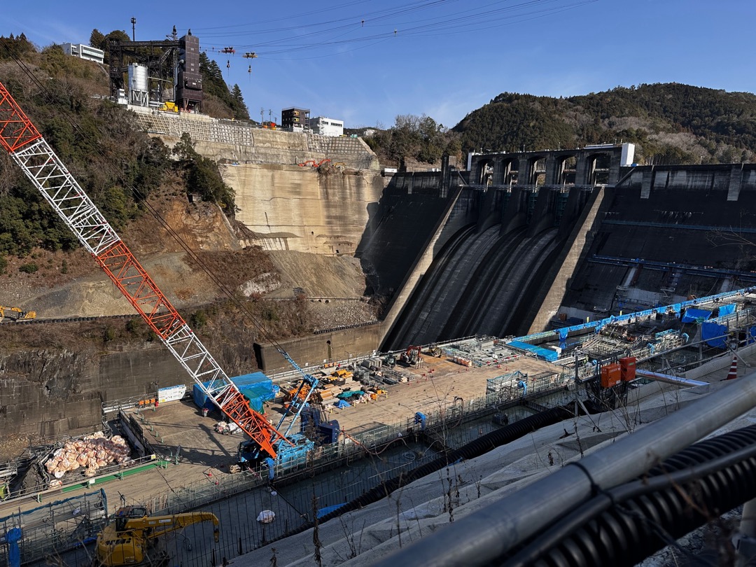 今日は、日曜日で工事はお休みのようでしたので路肩に駐めて写真だけ撮ってきました。丸山ダムは、堤高 98.2m、堤頂長 260.0mの重力式コンクリートダムです。このダムの約50m手前にさらに20mほど高さの高い新丸山ダムを建設中で令和11年(2029年)に完成予定です。この新しいダムが完成すると丸山ダムはダム湖に水没してしまうようです。水没する前に観に来ることができて良かったです。写真は撮れませんでしたが橋の上から観た丸山ダムが美しかったです。