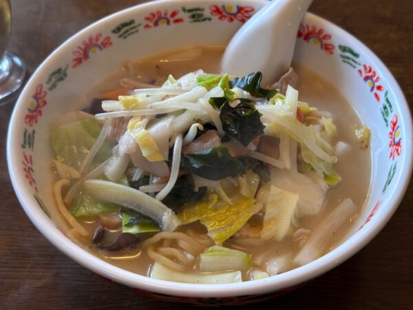 長崎ちゃんぽん980円です。あっさりしたスープに太麺のチャンポンです。麺が少なめで野菜多めと感じました。普通に美味しかったです。