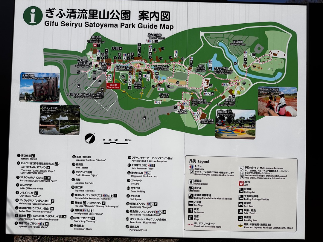 ここには、ぎふ清流里山公園があります。いつも到着が遅くなって営業時間を過ぎていたりして入ったことはありませんでした。てっきり有料の施設だと思っていたのですが、入場は無料と書いてありました。