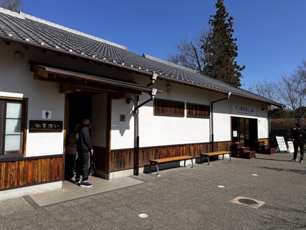 円形の大きな建物の右側にトイレがあります。小6、大3(洋3 洗浄便座付き)の中規模なトイレです。便座は暖房されているふりをしていますが節電モードで冷たいので、座るに際しては心構えが必要です。