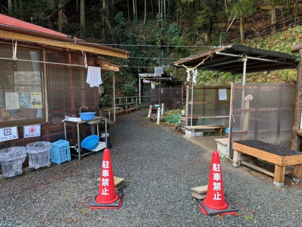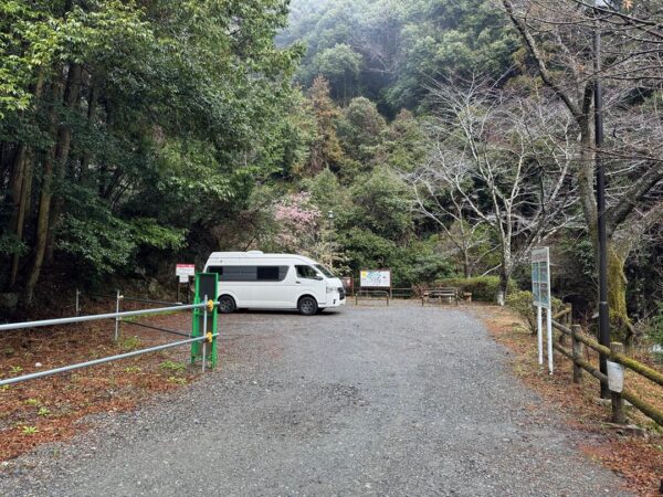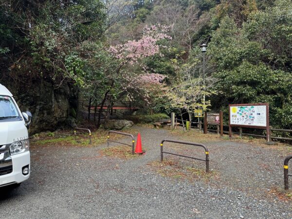 滝沢キャンプ場駐車場に車を駐めました。名称がキャンプ場駐車場になっていますが、滝を観に来る人のための駐車場で4台しか駐めることができません。「駐車時間は1時間未満に限る」と書いてあります。