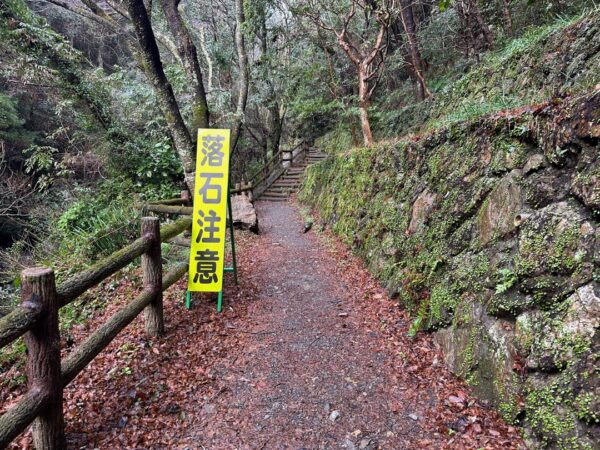 石が落ちてくるかもしれないような道を歩いて滝に向かいます。