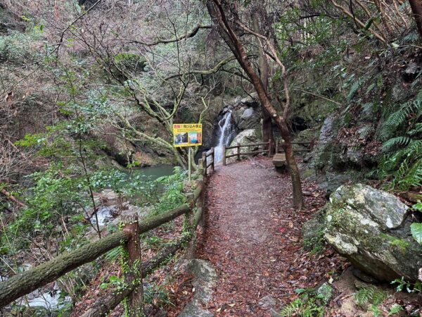 歩き始めて3分ほどで滝に着きました。