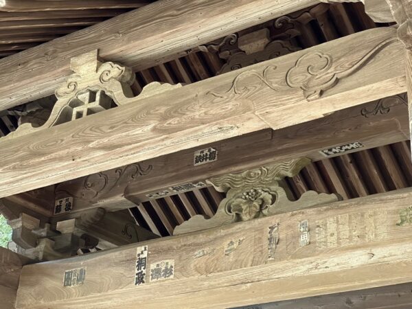 蟇股の下に卍があります。珍しいですね。奥の蟇股には、五七の桐が彫ってあります。どうして五七の桐なのでしょうか?