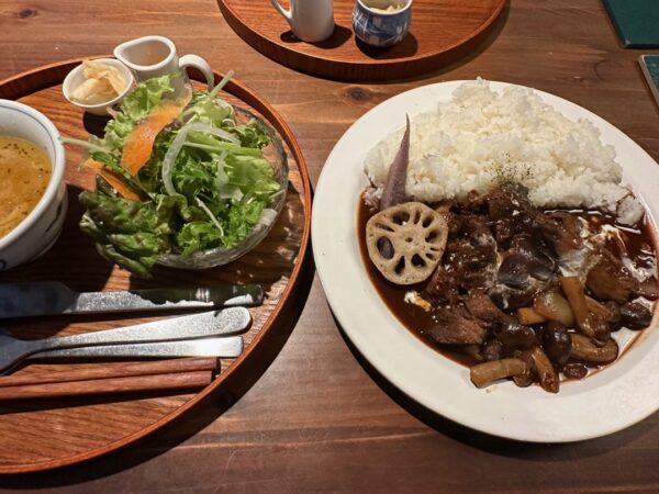 今日のご満悦おばさんは、ハッシュドビーフ(ライス付き)1,780円です。柔らかいお肉がゴロゴロ入っていて、味とコスパが最高だと、いたくご満悦のご様子でした。お互いに一切れを交換して味見をしましたが、とても美味しいお肉でした。これでカレーがあったら食べてみたいです。
