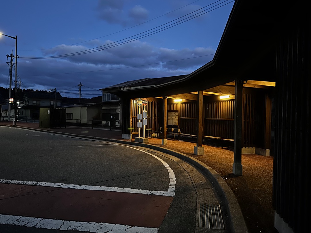 ここは、バスターミナルでもあります。トイレは売店の後ろ側にあり、左右両方から入ることができます。早朝から、おばさんが清掃をされていました。「冷えますね〜」と少し話をしました。最後に「珠洲市(すずし)は、涼しいと思ったけど寒いですね」とダジャレを言って去ろうと思ったのですが、すべってしまって、もっと寒くなりそうなのでやめました。