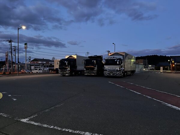 朝です。大型車のエリアにはトラックの人が数台泊まっていました。