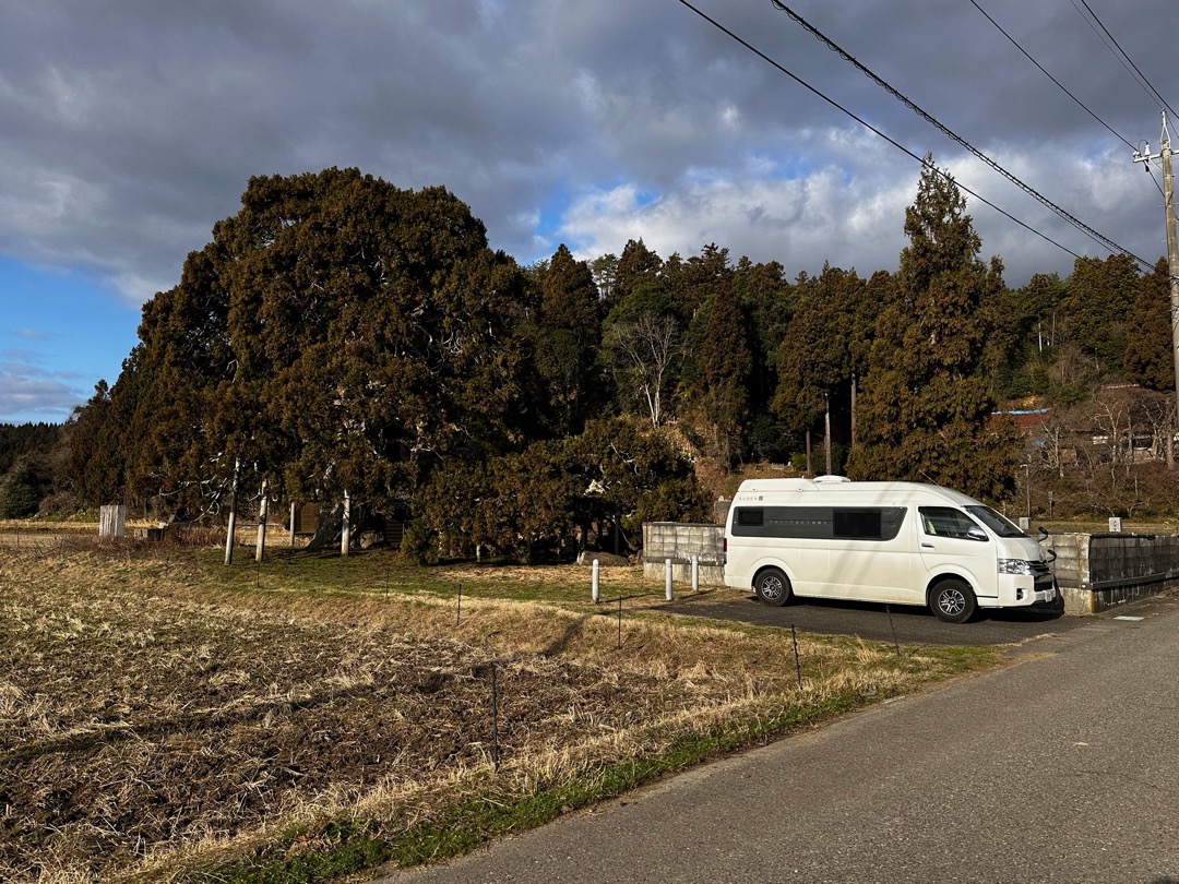 今日は、まず倒スギを観に行きました。スギの近くに2台だけ駐められる駐車場があります。