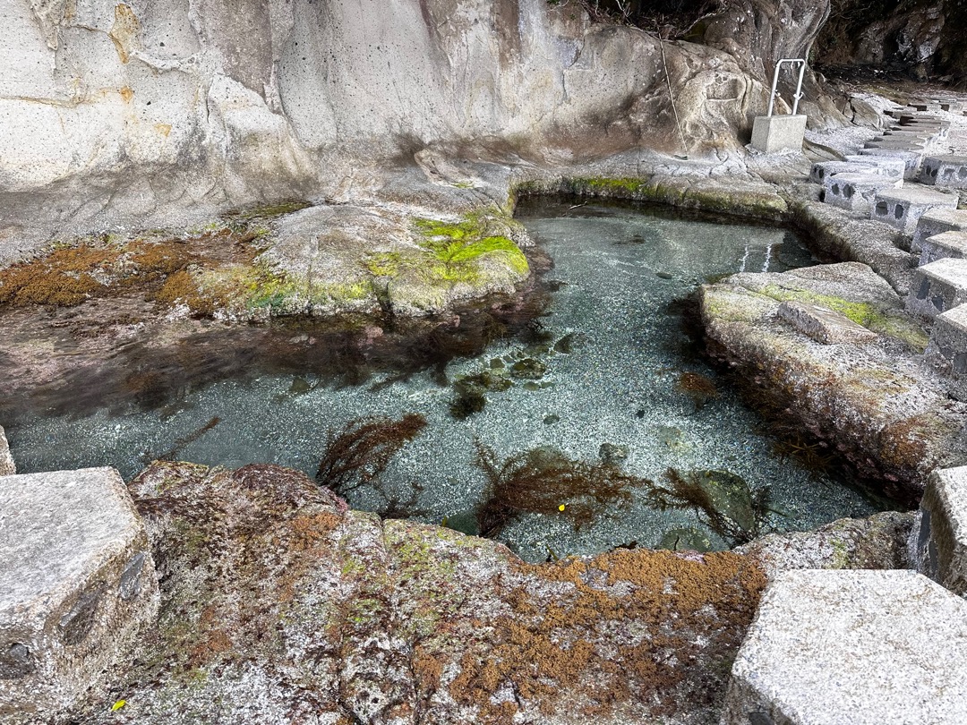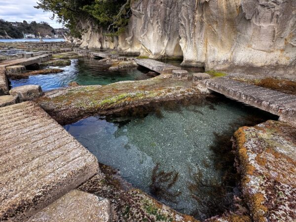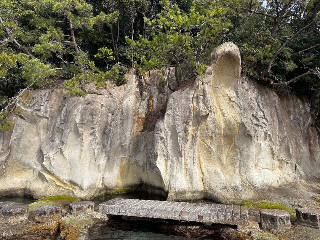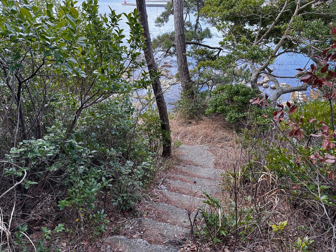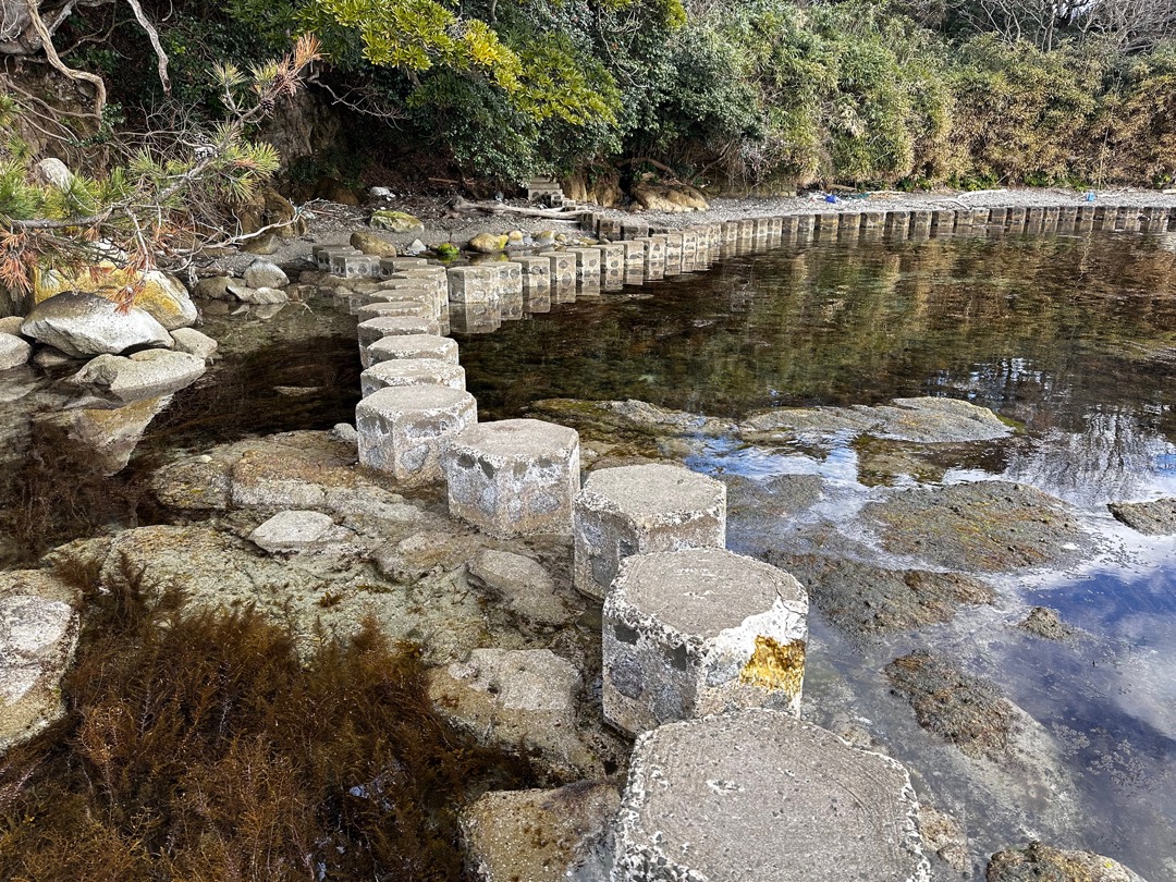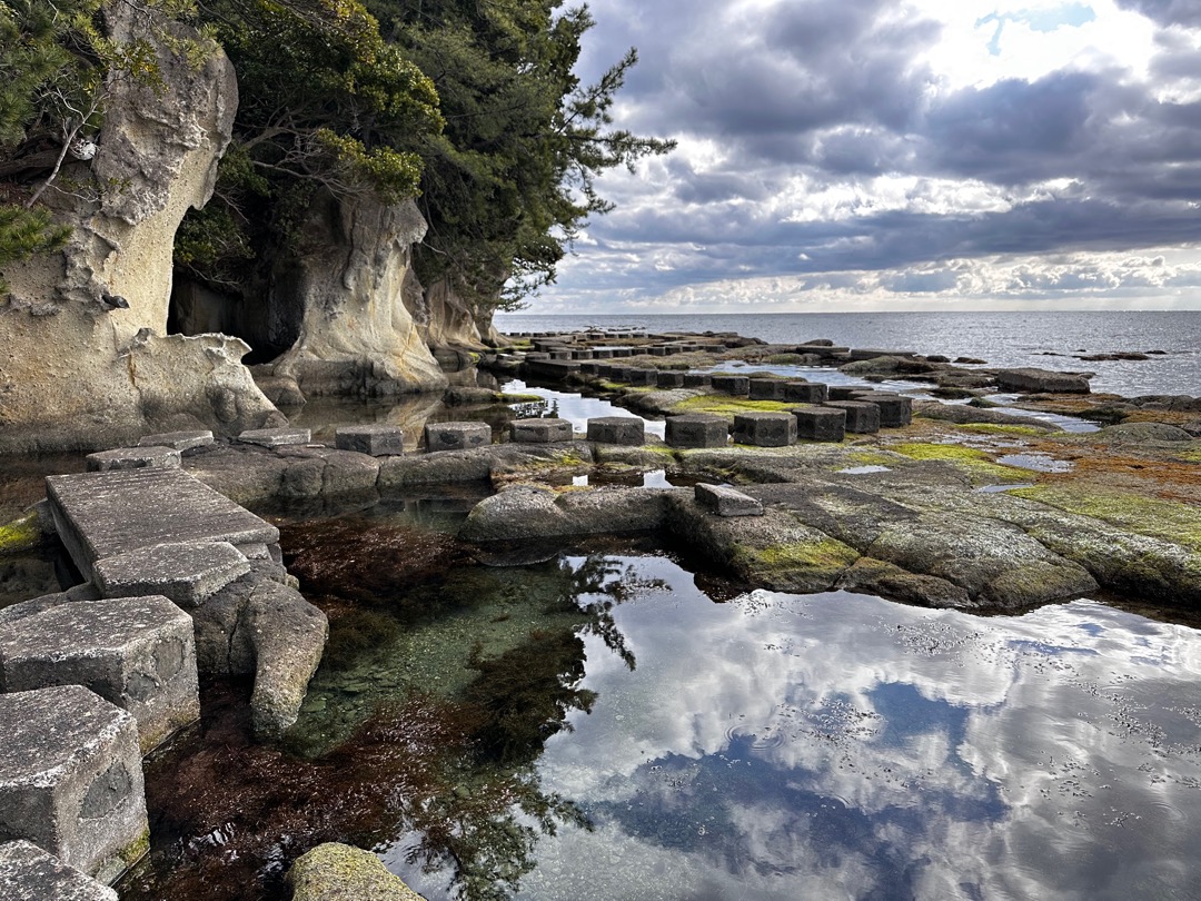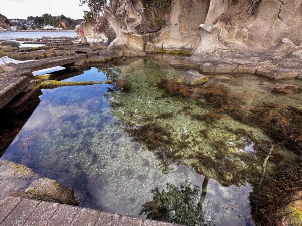 ここから磯の観察路を観に行きます。ここは、以前「やまとペディアの日本の素晴らしい景色」に認定したのですが、その後、海藻が繁殖し認定を取り消した経緯があります。今回、その後の状況を確認しに来ました。