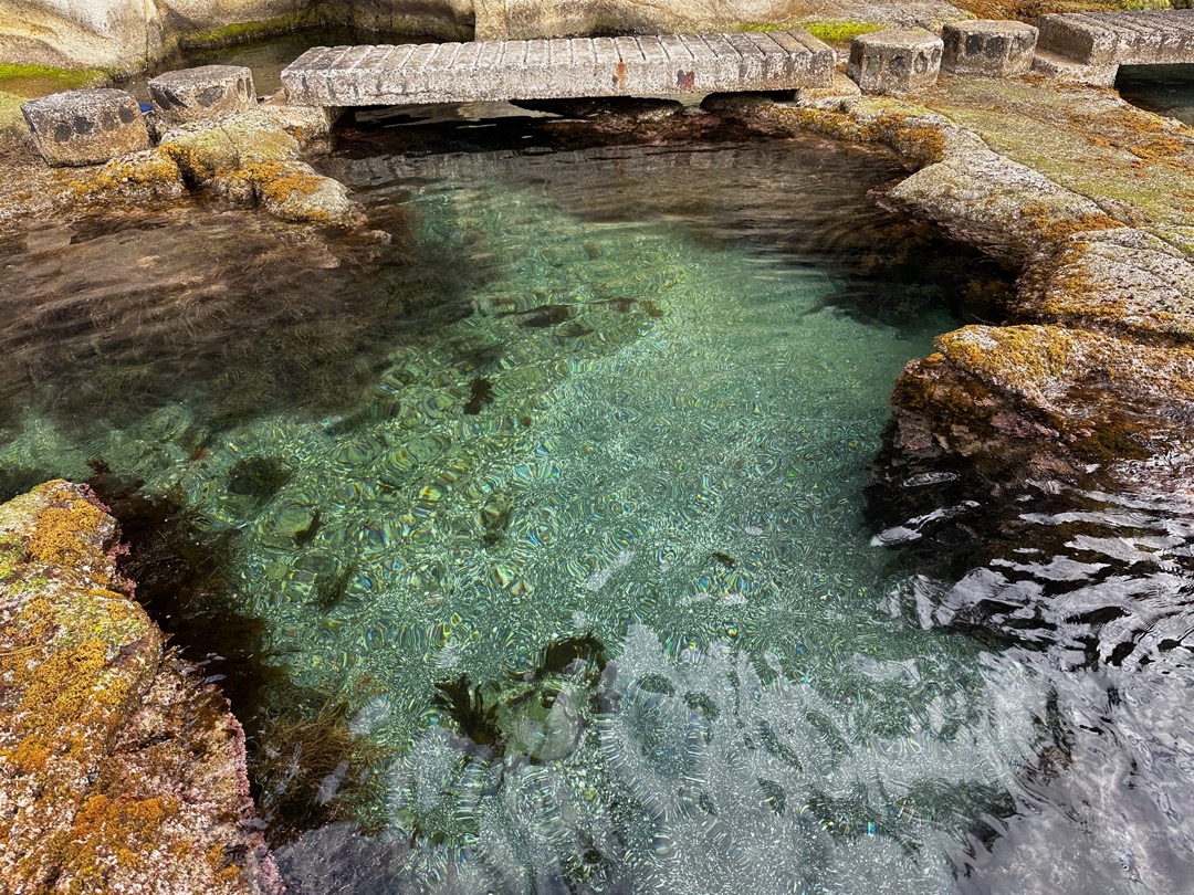潮位は5cmなのですが、千畳敷には水が満ちていました。もっと潮が引かないと観られないのだろうと思います。もしかすると地盤が少し下がってしまったのかもしれません。わかりません。