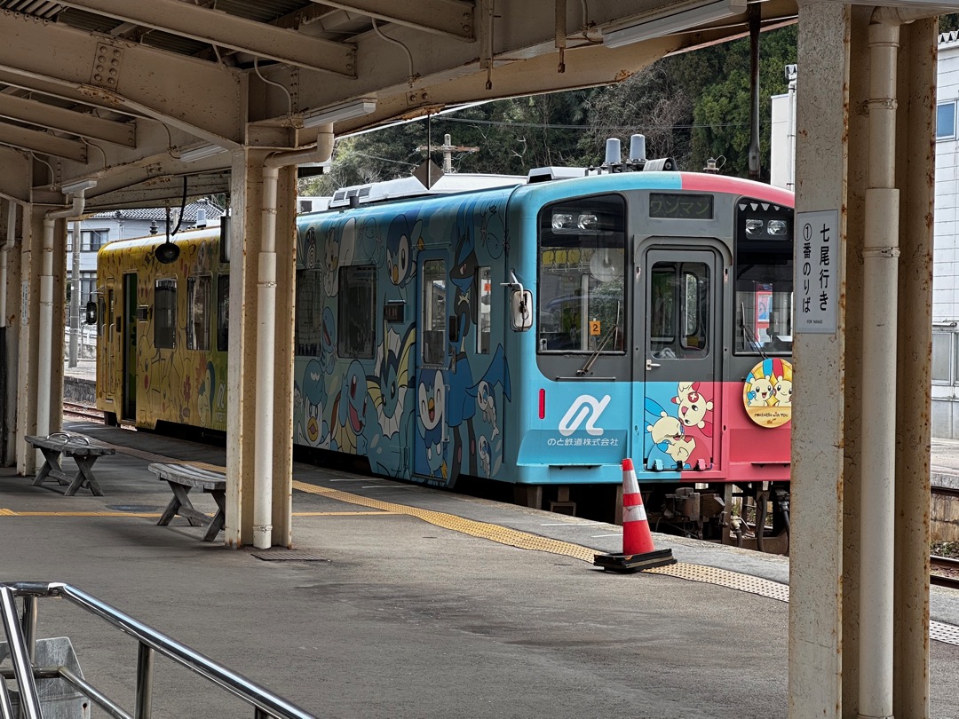トイレの奥にも出口があり、そこを出ると、なんと駅のホームに出てしまうというちょっとびっくりなトイレです。せっかくなので、停まっていた列車を撮りました。