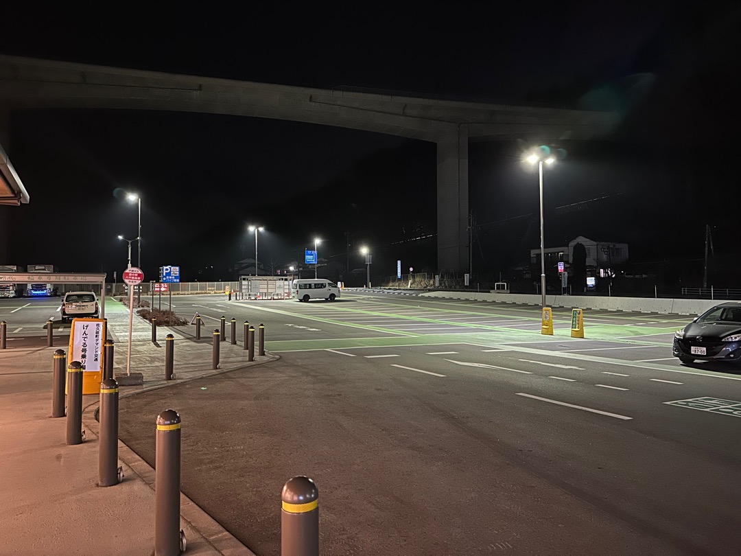 夜は広い駐車場に少しだけ車が駐まっていました。