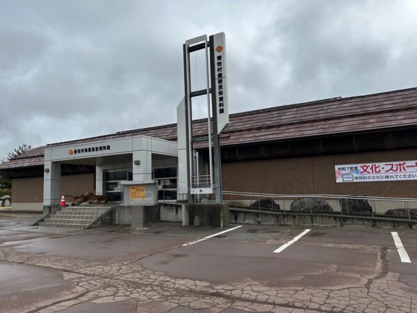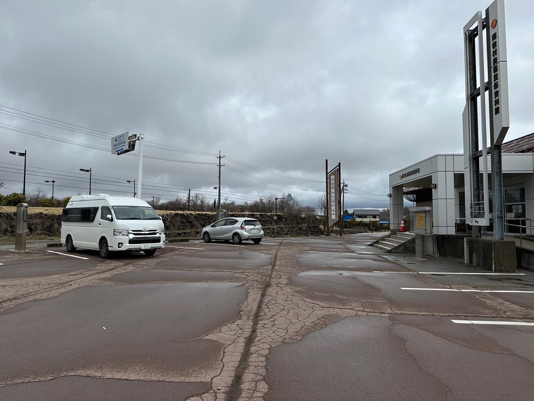 資料館の前にある駐車場に車を駐めました。標高が高いからか気温8℃と寒いです。