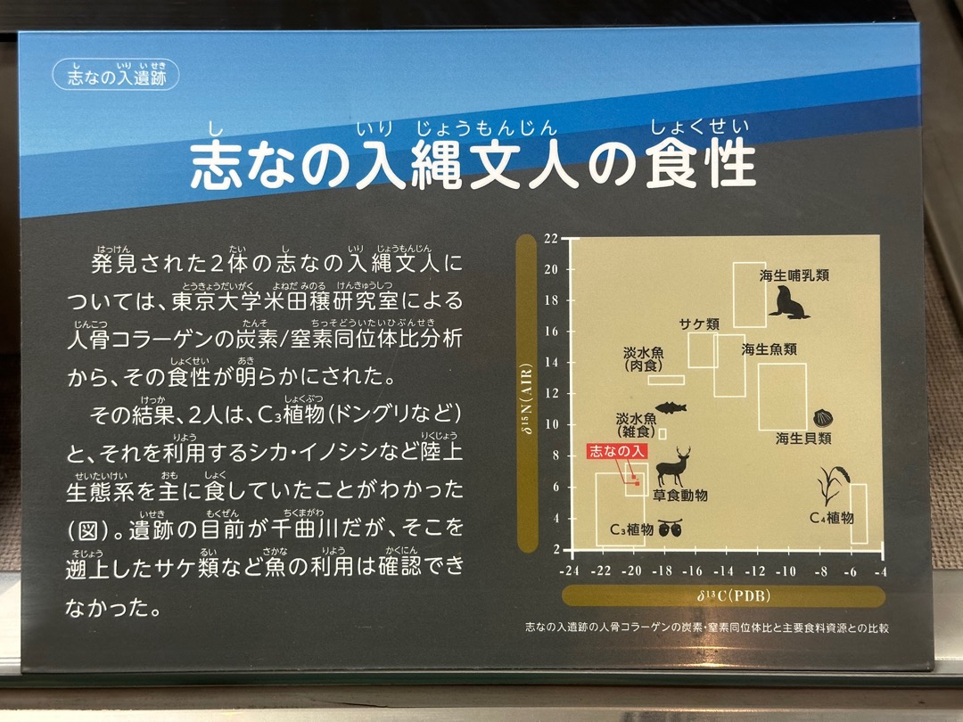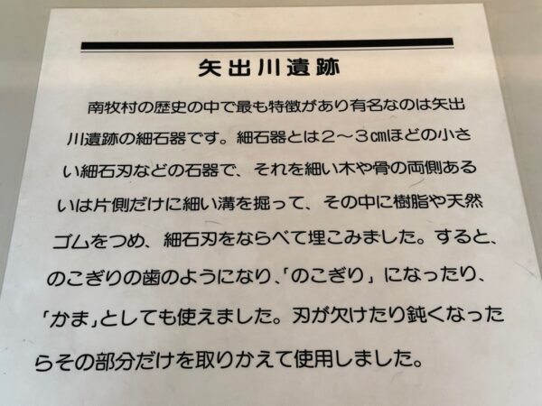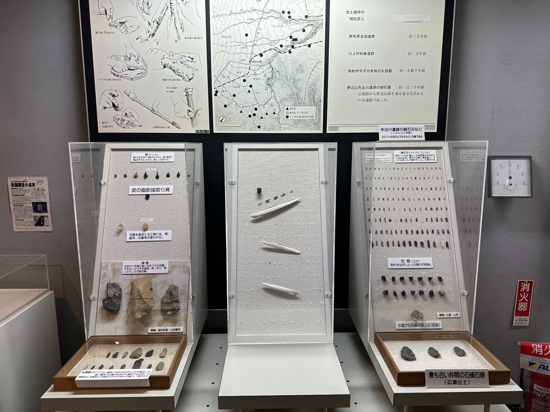 内容的に300円は、ちょっと高いかなと思いましたが、日本で最初に細石刃が見つかった矢出川遺跡に関する展示や、縄文人の人骨(実物)とその復元模型などがあることなどを考えると、まあこんなもののような気もしないでもないです。