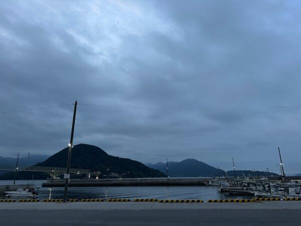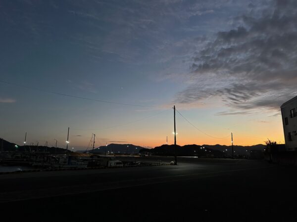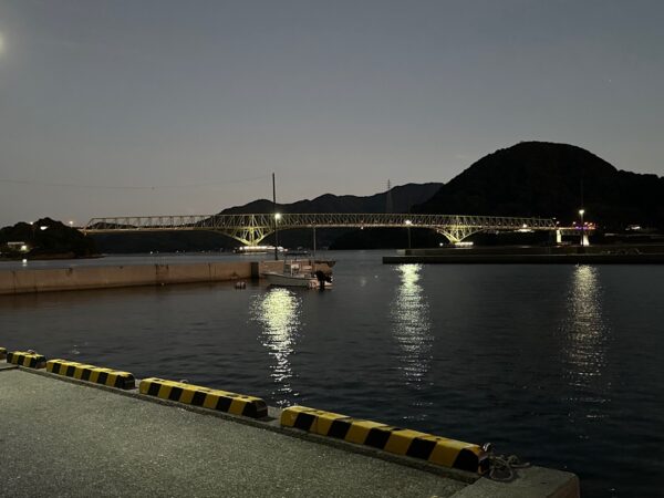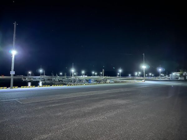 夜になっても、釣り客はいなく、静かな港でした。風が適度にあって涼しいところでした。
