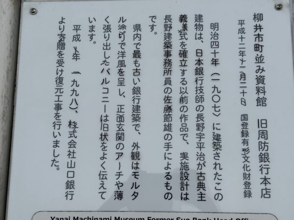 明治40年(1907年)に周防銀行本店として建築された建物です。