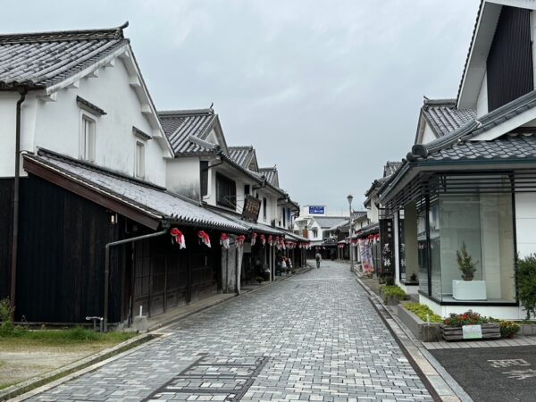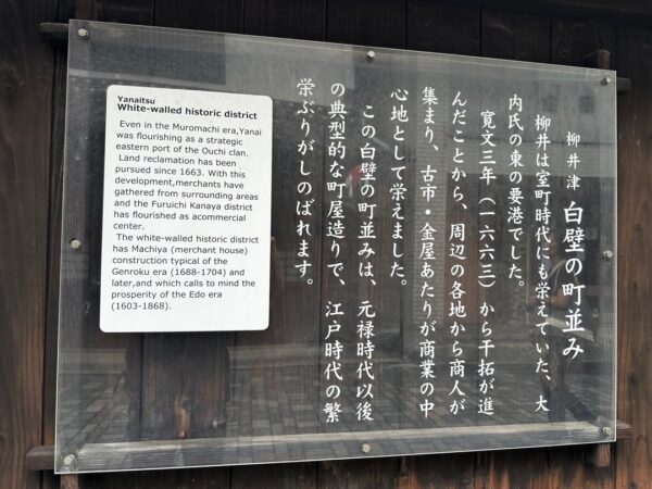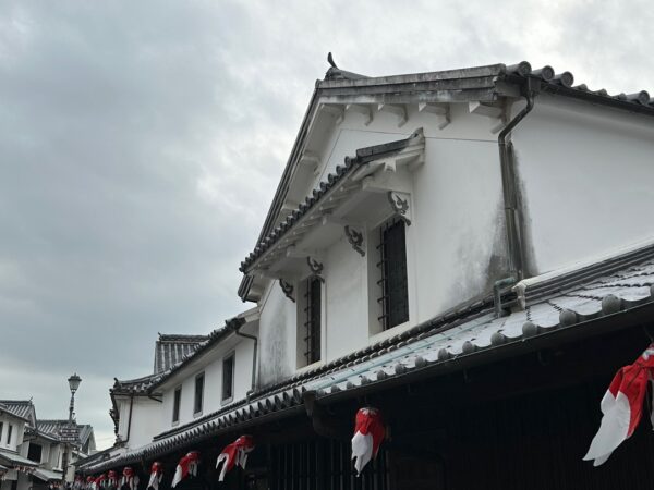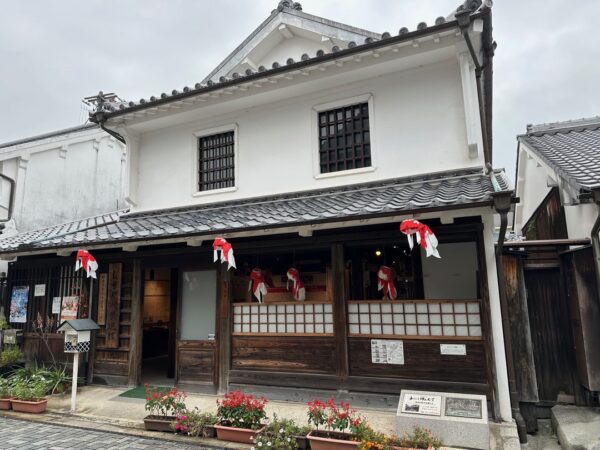 これから白壁の町並みを歩いていきます。ここは重伝建になっています。建物が切妻妻入で、いわゆるうなぎの寝床のようになっています。他の重伝建で間口の長さで税金が決まっていたところがありました。ここもそうなのかもしれません。