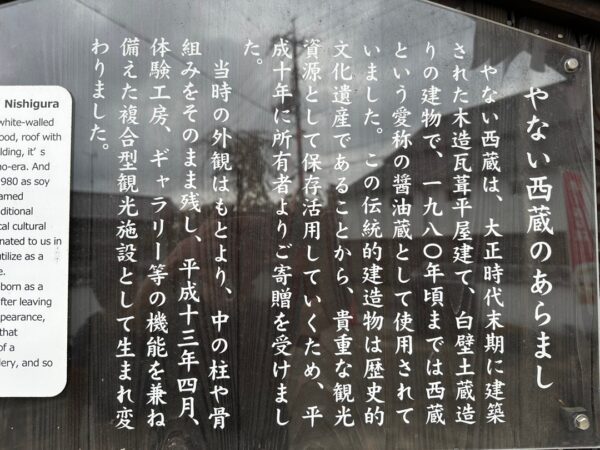 昔、醤油蔵として使われていたところを耐震補強して展示館にした施設に行きました。体験は有料ですが、見学は無料でした。
