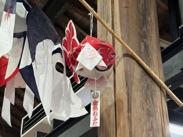 金魚ちょうちんは、もともと弘前のきんぎょねぷた(写真のもの)がもとになっているそうです。それが北前船で伝わって、ここの金魚ちょうちんとなったそうです。