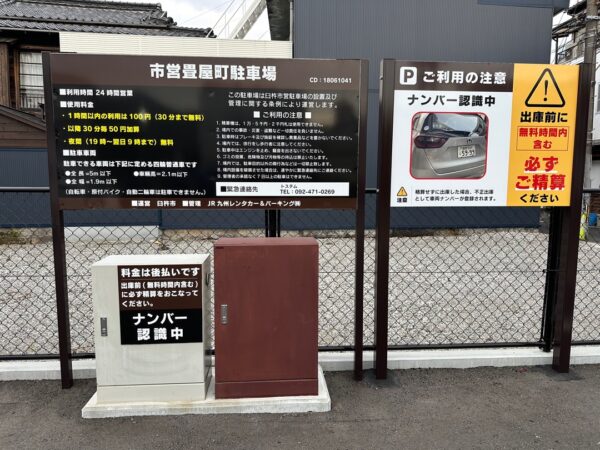 1時間100円(最初の30分無料)以降30分毎50円加算です。