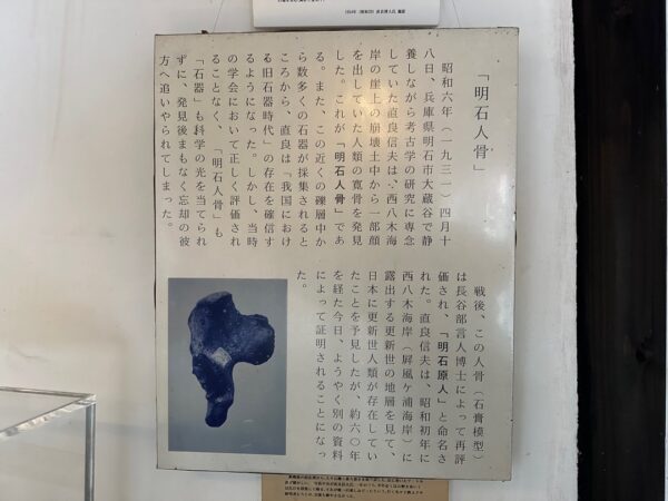 直良信夫さんは、明石原人の骨を発見したものの、学会の人たちからは評価されないばかりか誹謗中傷を受けました。その後、その骨は空襲にあい灰となってしまいました。しかし、のちに、その骨の石膏模型から再評価されることになり「明石原人」と命名されるに至りました。
