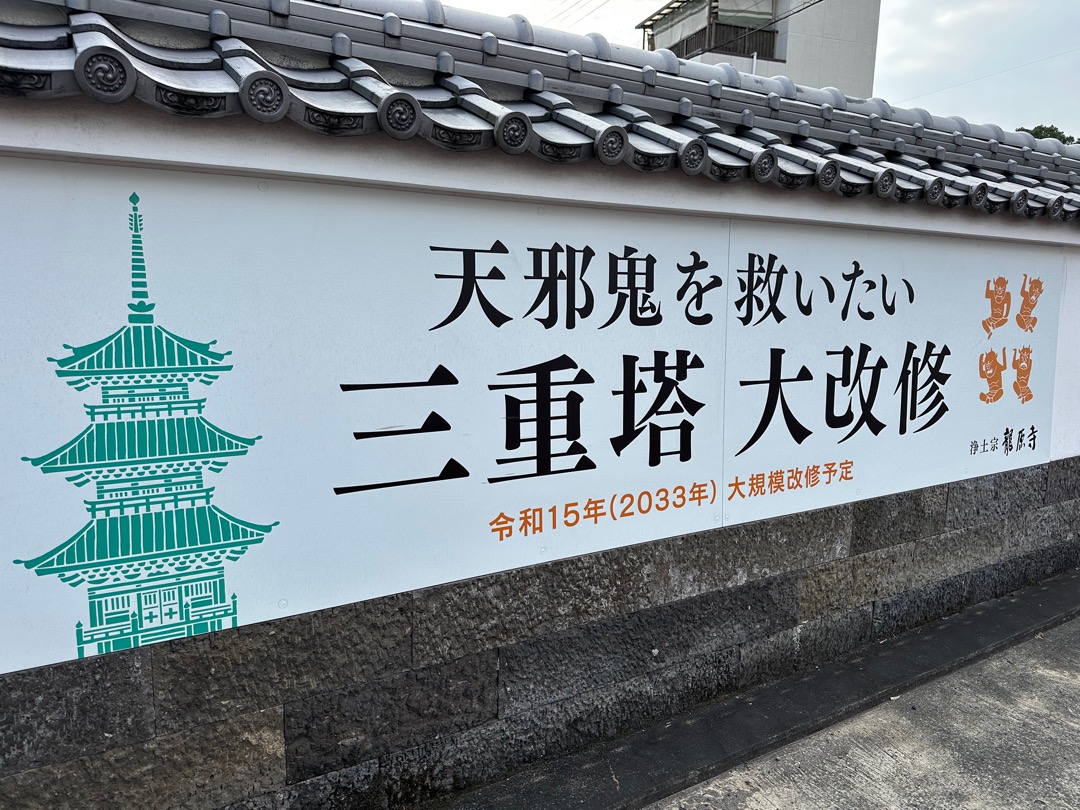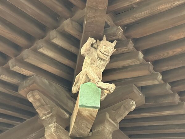 三重塔が目当てで参拝しました。和様建築の美しい塔でした。四隅に鬼のようなものがいるなぁと思っていたら、「天邪鬼」(あまのじゃく)だそうです。
