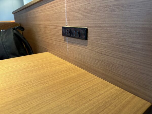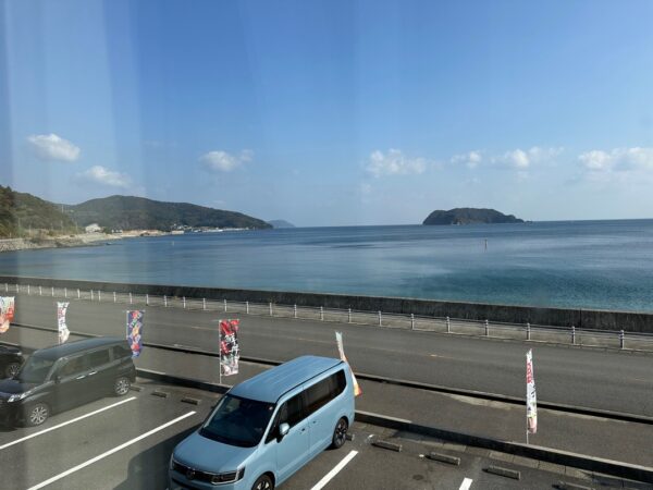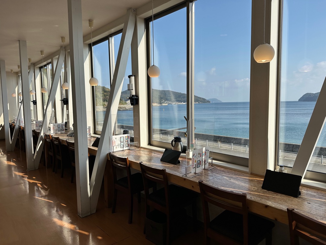 そのカウンター席とテーブル席にはコンセントが付いていました。WiMAX +5Gは、豊後水道の中央部分と三崎港の近くを除いて使用することができました。