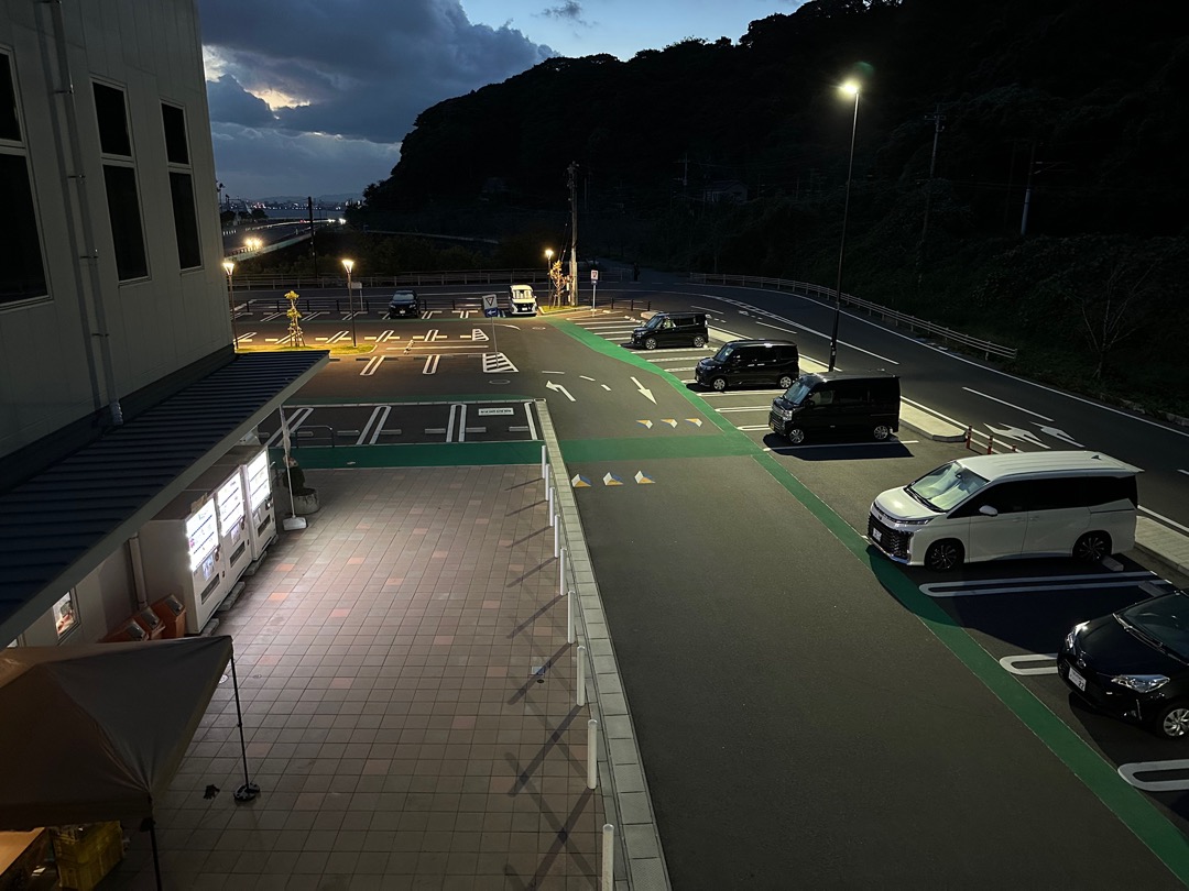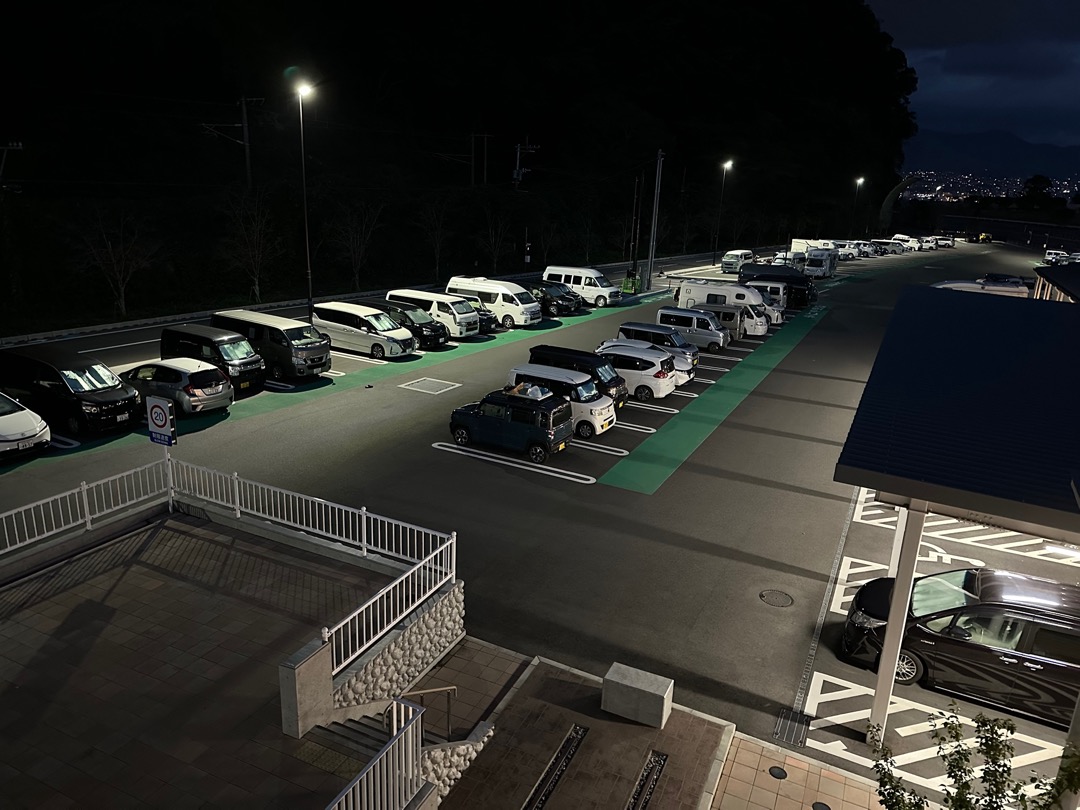 駐車場の東側は少し余裕がありました。ざっと数えても100台くらいは車中泊をしていました。これだけの人が車中泊をしているのも珍しいと思います。