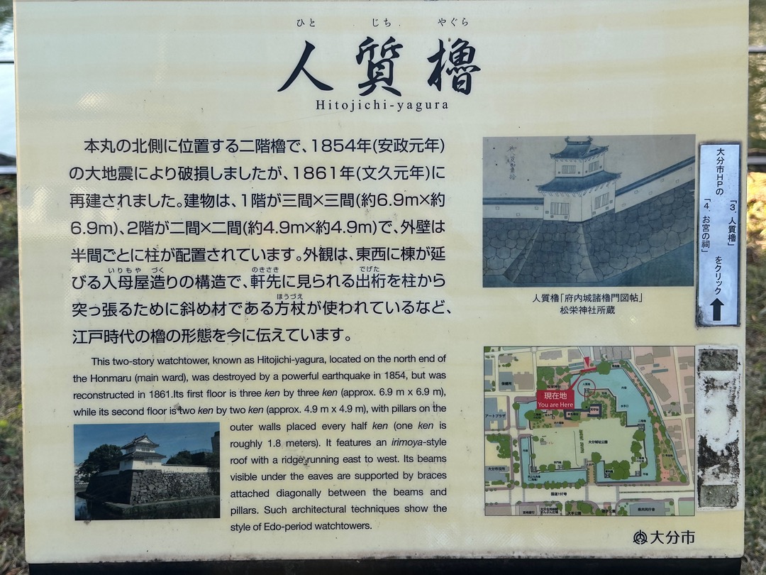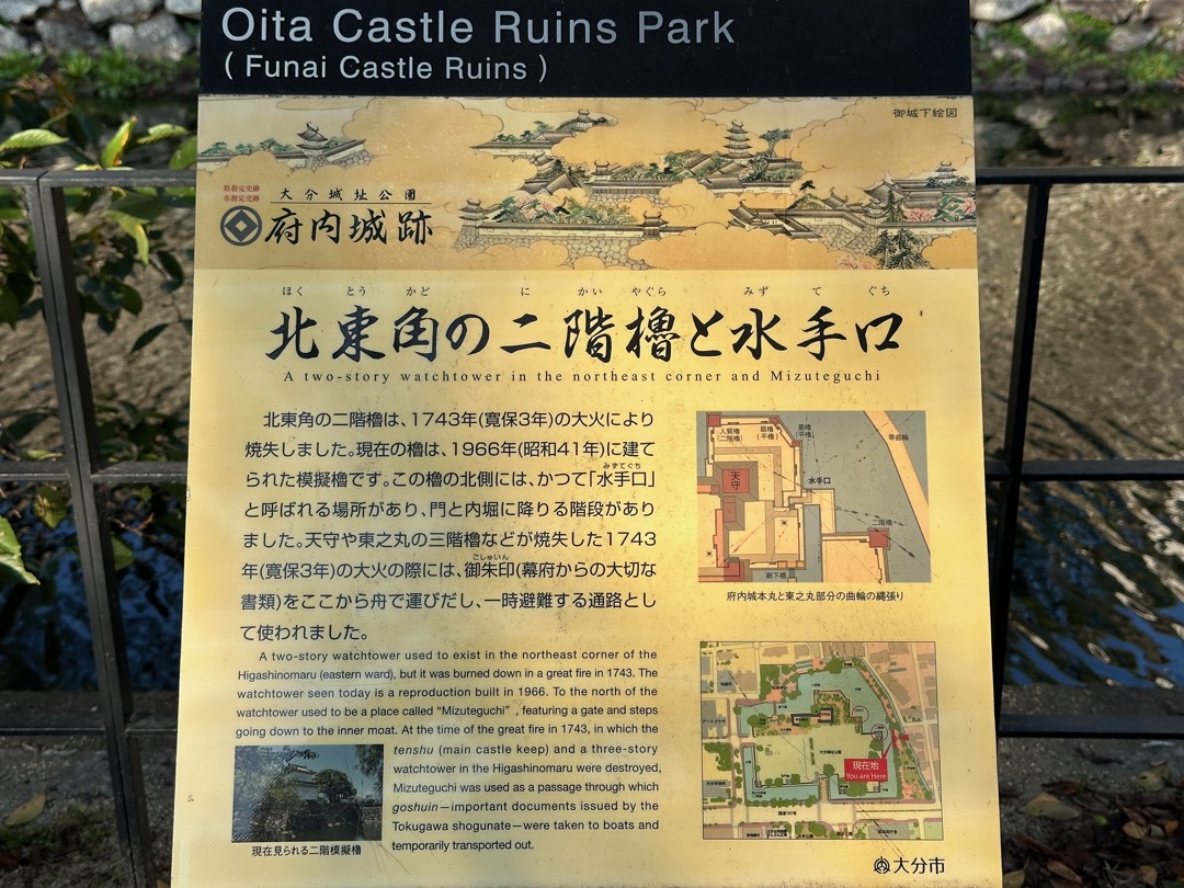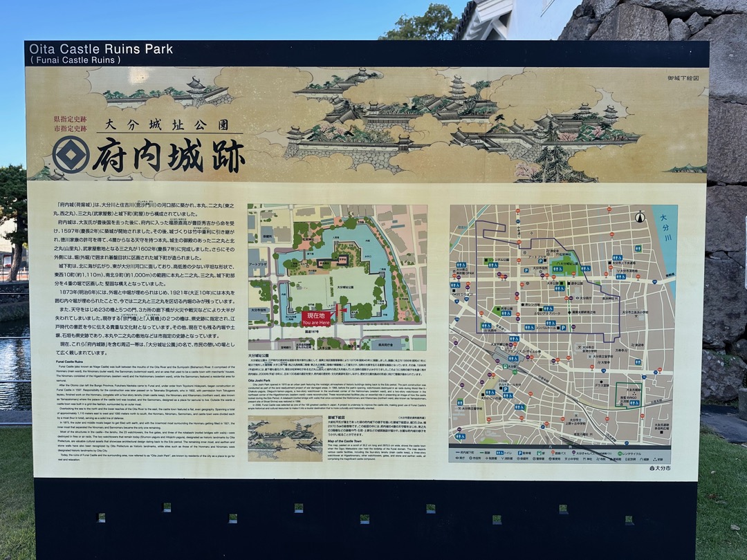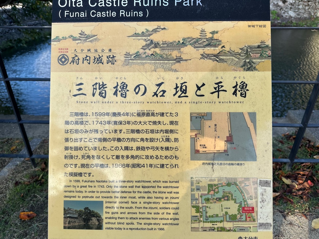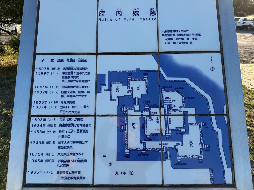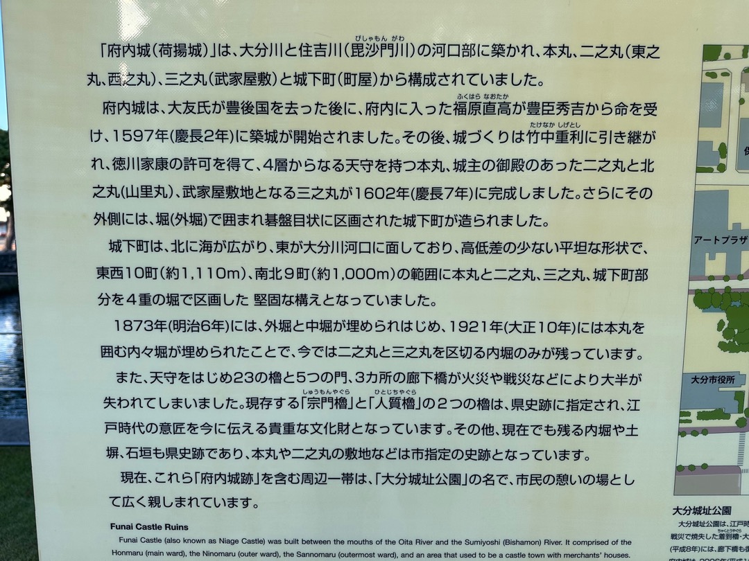 府内城は、100名城のひとつで福原直高が築城に取り掛かり、竹中重利が完成させました。詳細はこちらの説明を御覧ください。