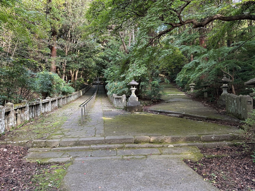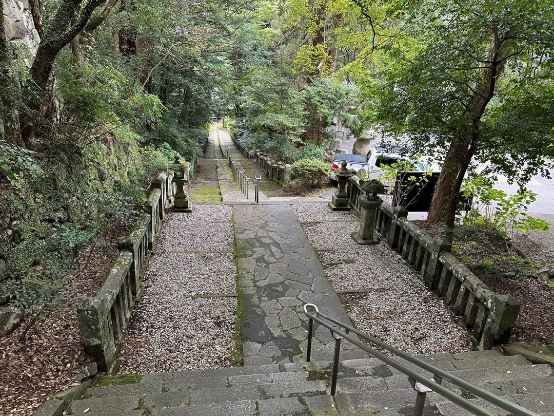 しかし、参道入口まで戻ることになるので、拝殿だけの参拝でなければ、参道入口横にある第三駐車場に駐めるのがよいと思います。ここから石段を上っていきます。