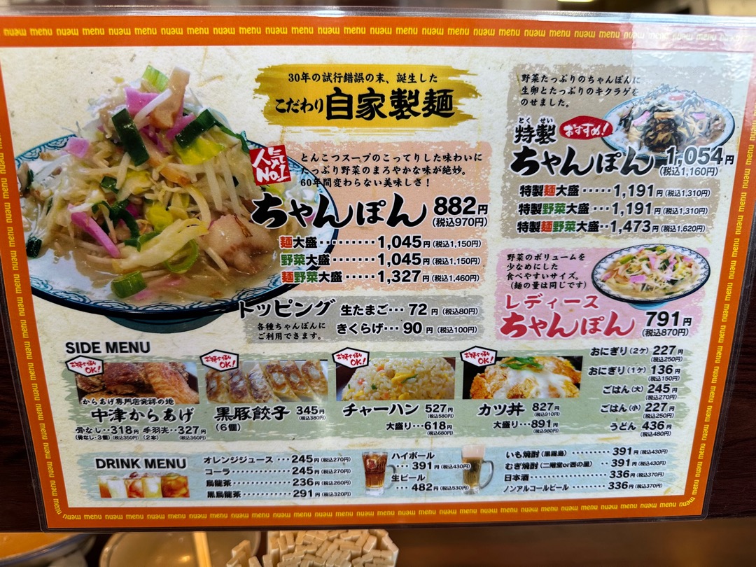 ちゃんぽん970円です。ちゃんぽんには柚子胡椒が合いますね。野菜たっぷりで美味しいちゃんぽんです。