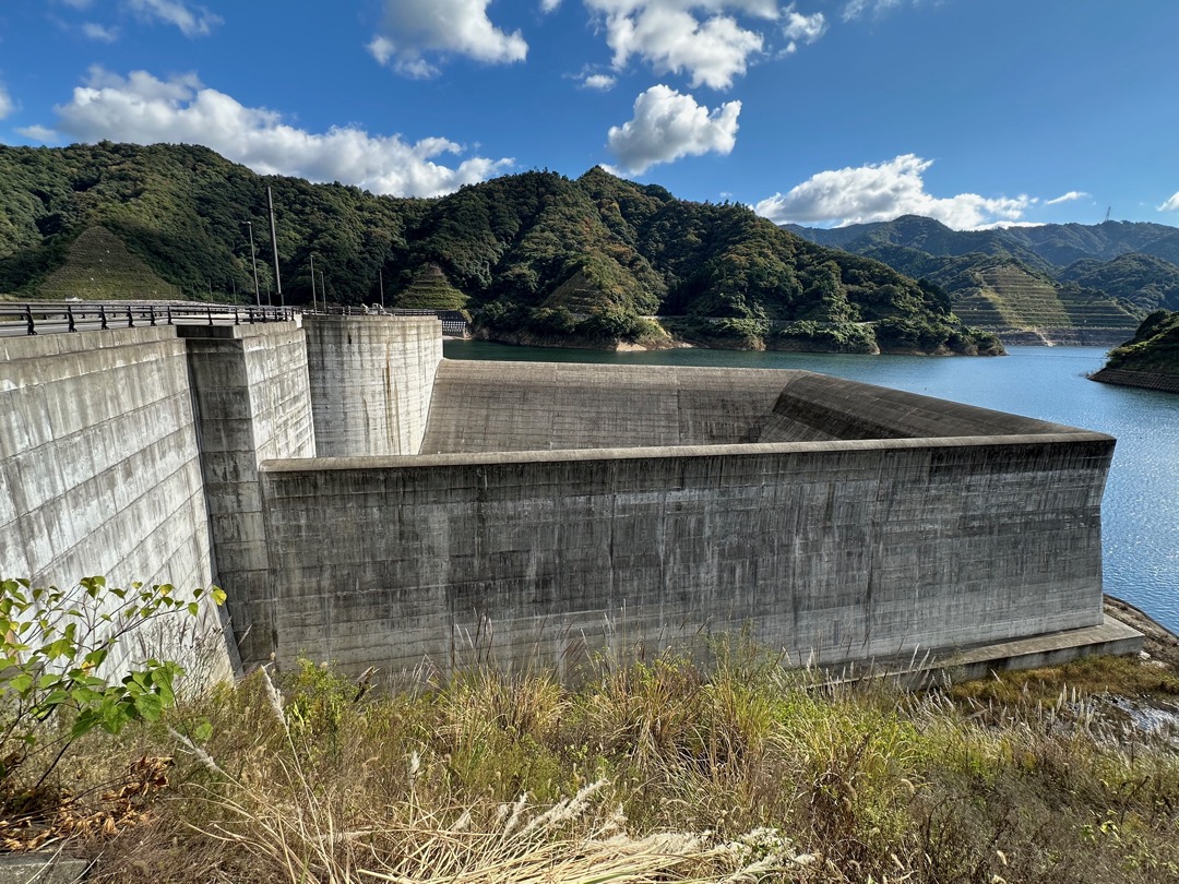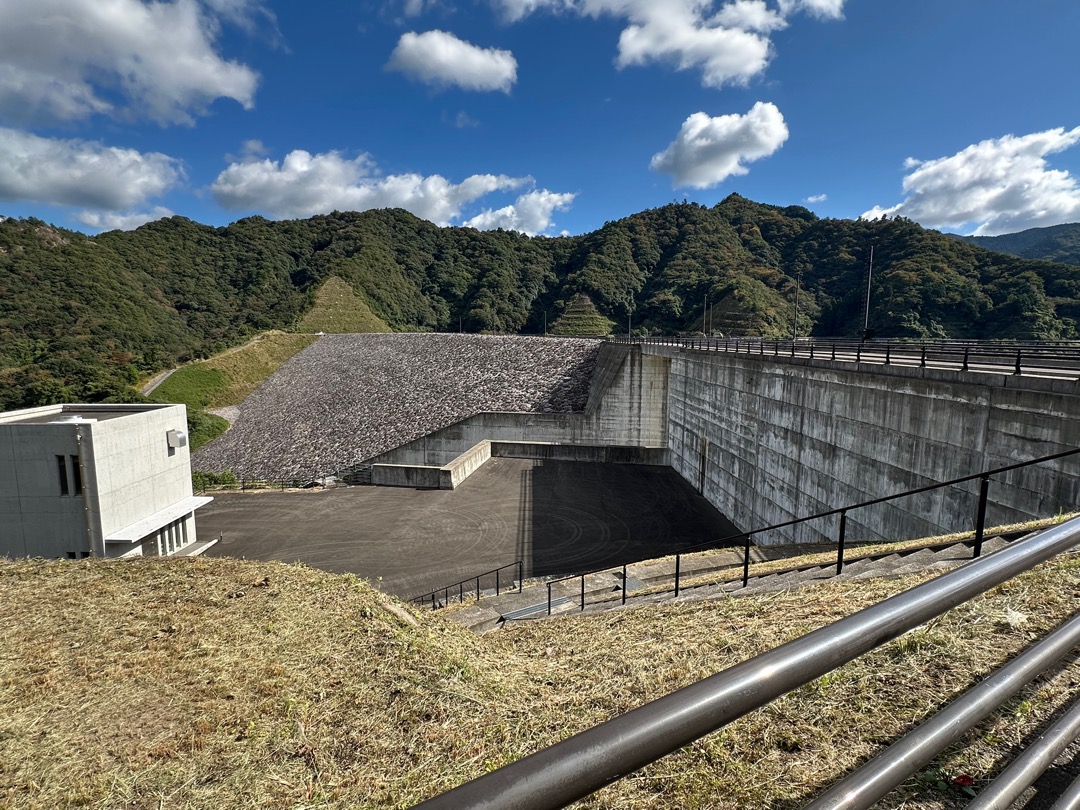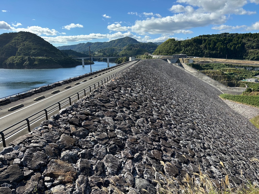 堤高 92m、堤頂長 500mの中央コア型ロックフィルダムです。
