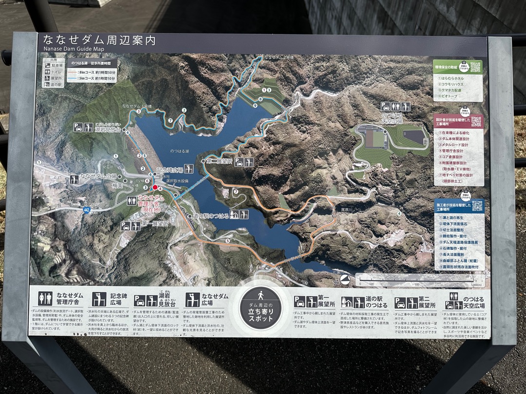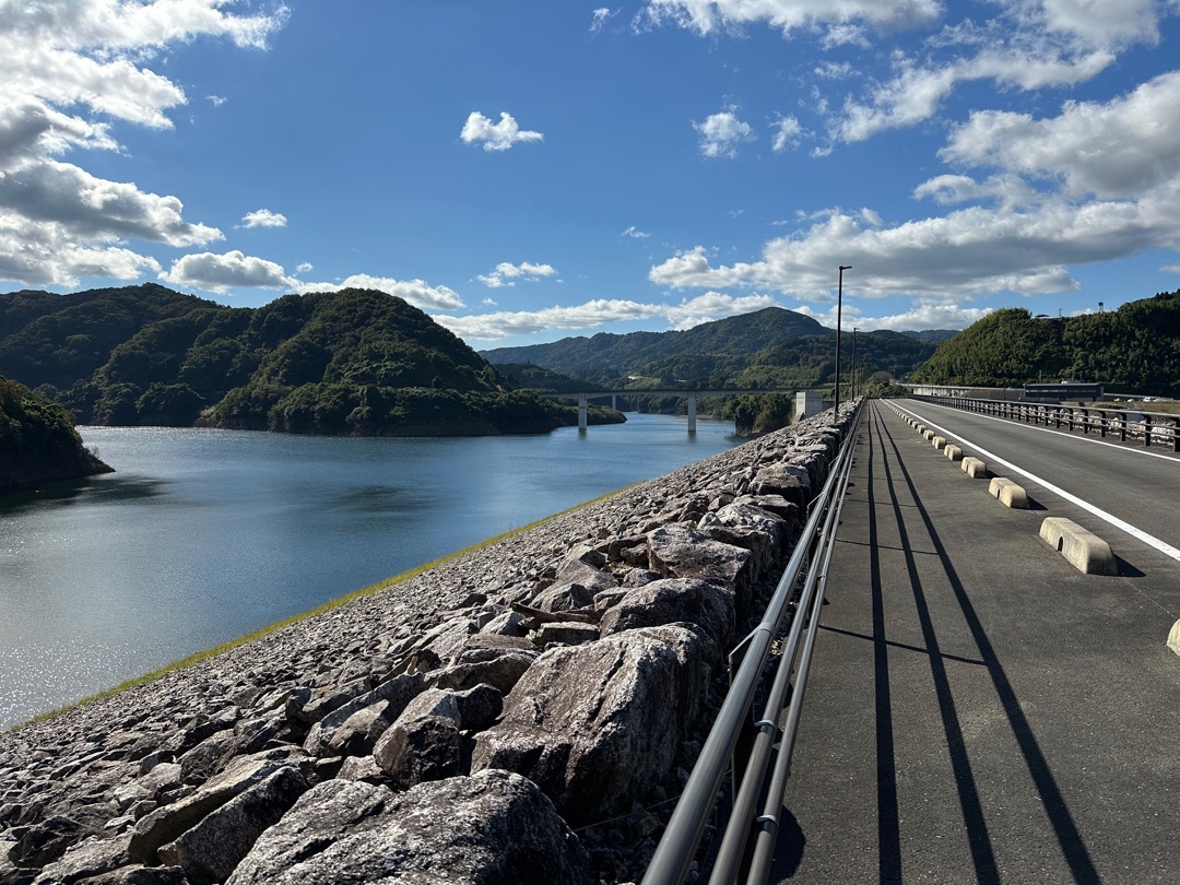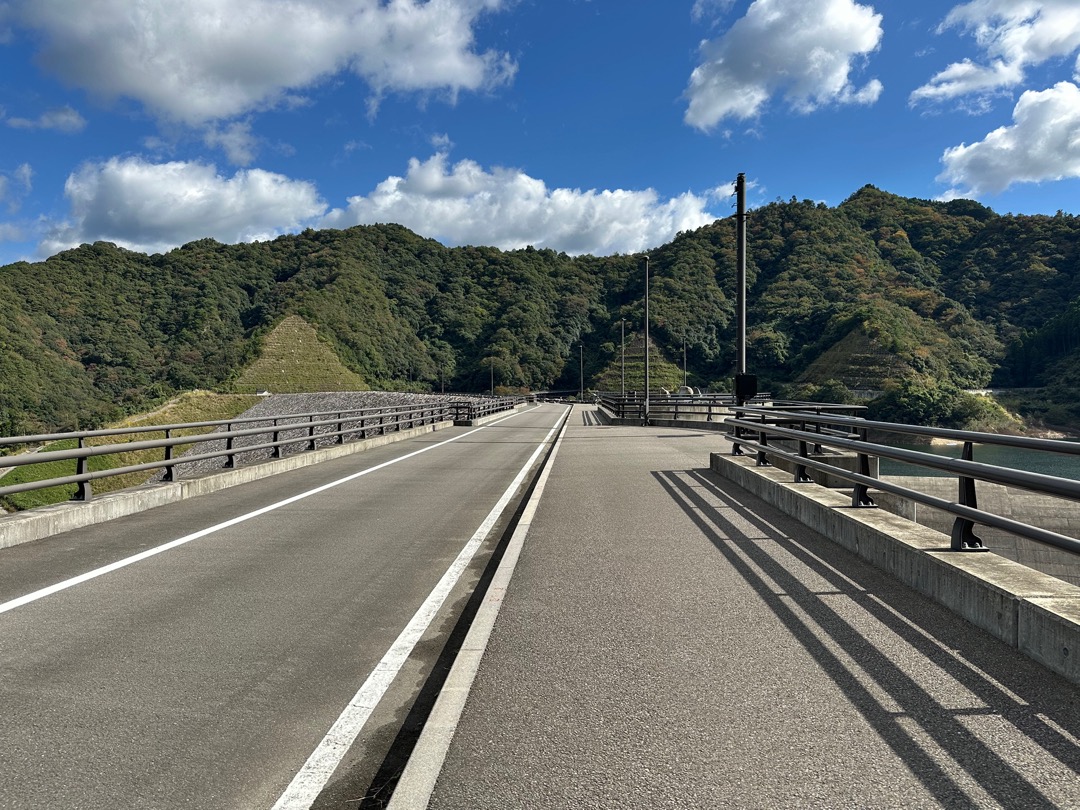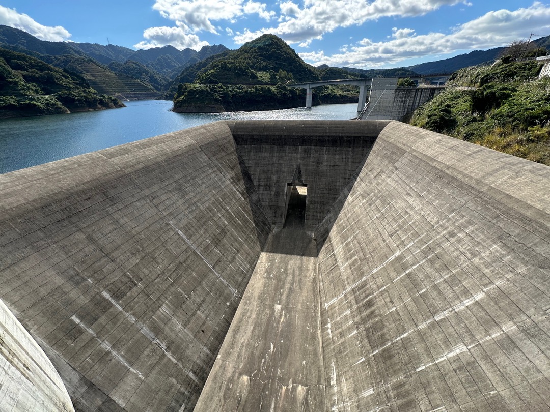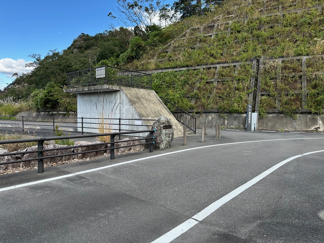 堤頂をてくてく歩いて反対側にある湖岩見放台に行きました。これ反対側に検査のためにダムの中に入るための出入り口があったはずですね。今、気づきました。