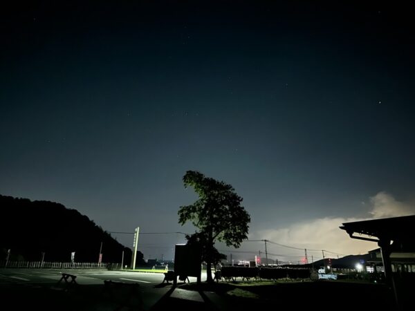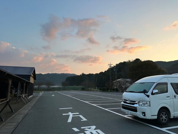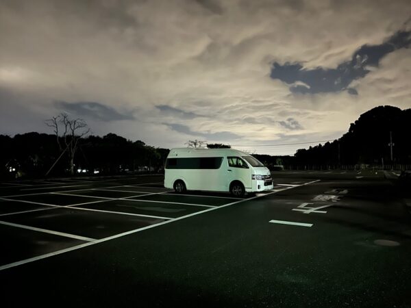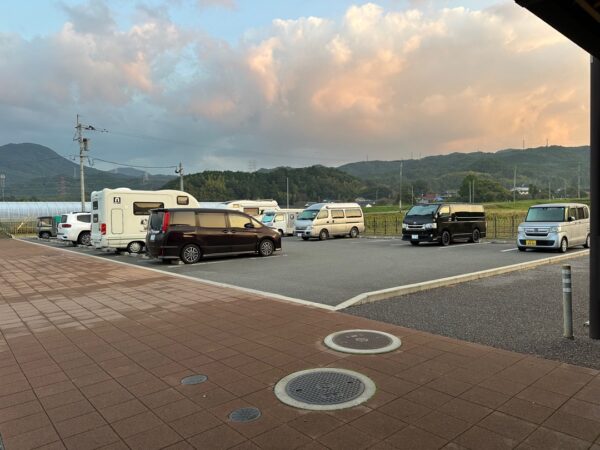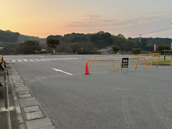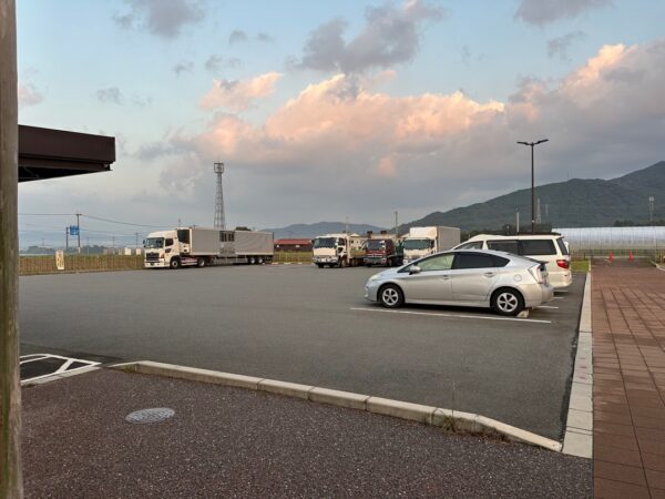 なんと、僕らが泊まった駐車場は、夜は使用しない駐車場だったようです。来た時には、この黄色いバーはありませんでした。